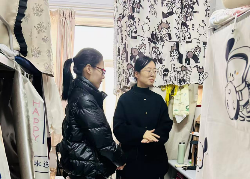 学生宿舍是安全管理的重要阵地。11月9日,辅导员李佳深入学生宿舍,开展常态化安全卫生检查,重点排查违规电器使用、消防设施状态及环境卫生状况,并在检查过程中现场宣讲安全知识,即时督促整改发现的问题。走访期间,李佳老师还与同学们亲切交流,关心其生活适应情况与心理状态,在严格管理中融入人文关怀,努力营造安全、温馨的住宿环境。
