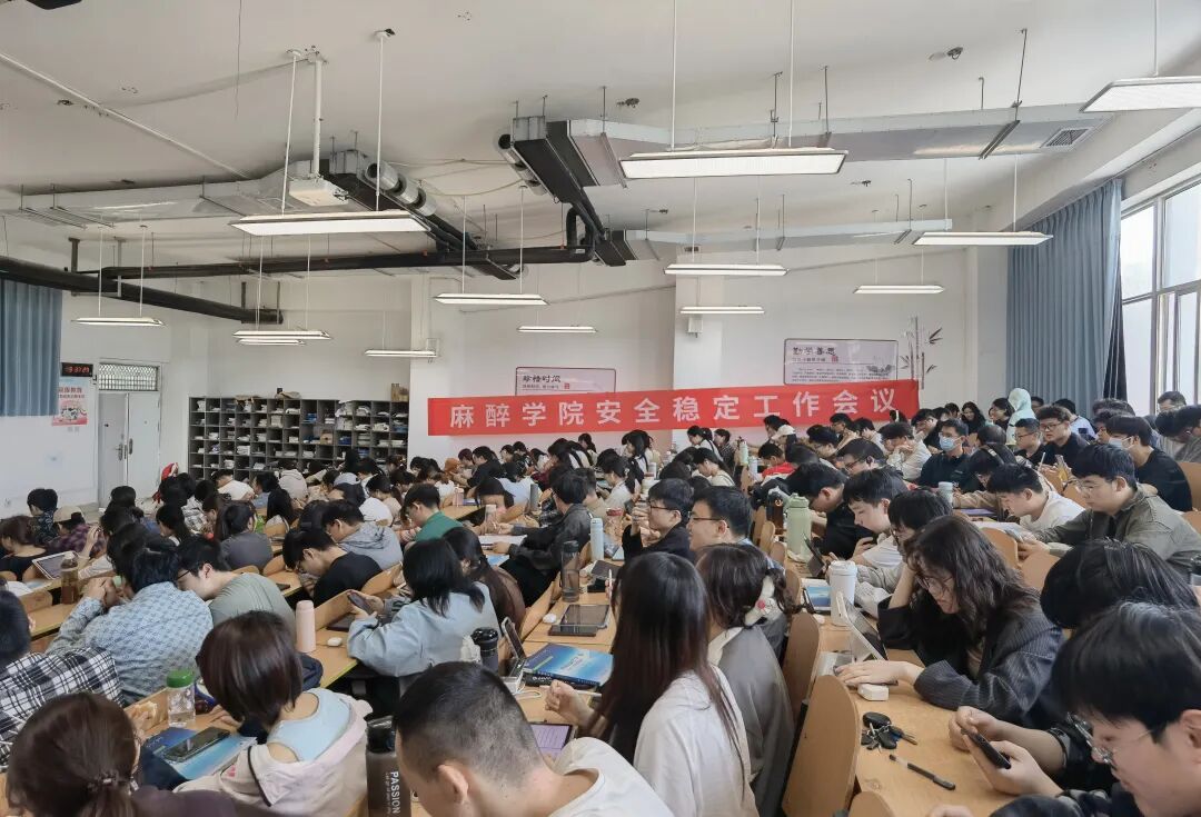 为进一步强化校园安全管理,筑牢师生安全防线,麻醉学院在卫辉校区 1206教室开展麻醉学院安全稳定工作会议。学工办副主任何昊、辅导员刘慧仿以及全体麻醉学生出席讲座。