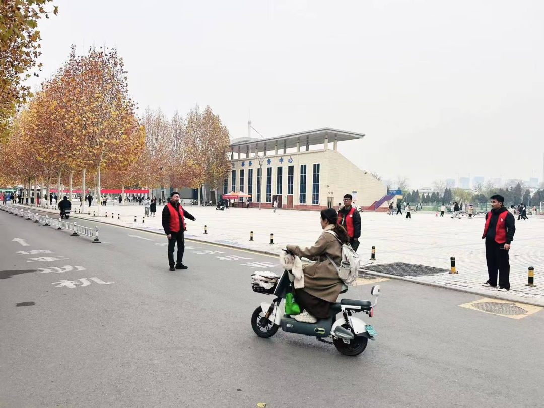 活动期间,他们身穿志愿服,积极指挥交通,对部分同学不佩戴头盔以及不走非机动车道等违反交通规则的行为,他们积极用手势加以引导,告诫同学们在骑车过程中要遵守交通规则,遇到复杂的路况要主动减速慢行,礼让行人。停车时,将车辆停放到指定停车区域,不随意占道停放。同时提醒步行的同学们在行走过程中不嬉戏打闹、不奔跑,集中注意力观察周围路况,确保安全后再快速通过。
