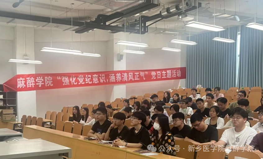 为加强党员党纪党规教育,增强广大党员干部纪律意识,深入推进党纪党规教育工作的开展,6月7日,麻醉学院学生第三党支部于卫辉校区1201教室开展了以“涵养清风正气,强化党纪意识”为主题的党日主题活动,会议由支部书记李佳同志主持。