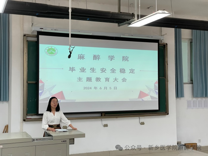 随着毕业季的临近,毕业生们面临着就业、升学等多重选择,同时也面临着各种安全风险和挑战。为了加强毕业生的安全意识和自我保护能力,6月5日上午,麻醉学院于教学楼1201室召开了“毕业生安全稳定”教育大会。此次大会由麻醉学院辅导员李佳主持召开,麻醉学专业全体毕业生参加。