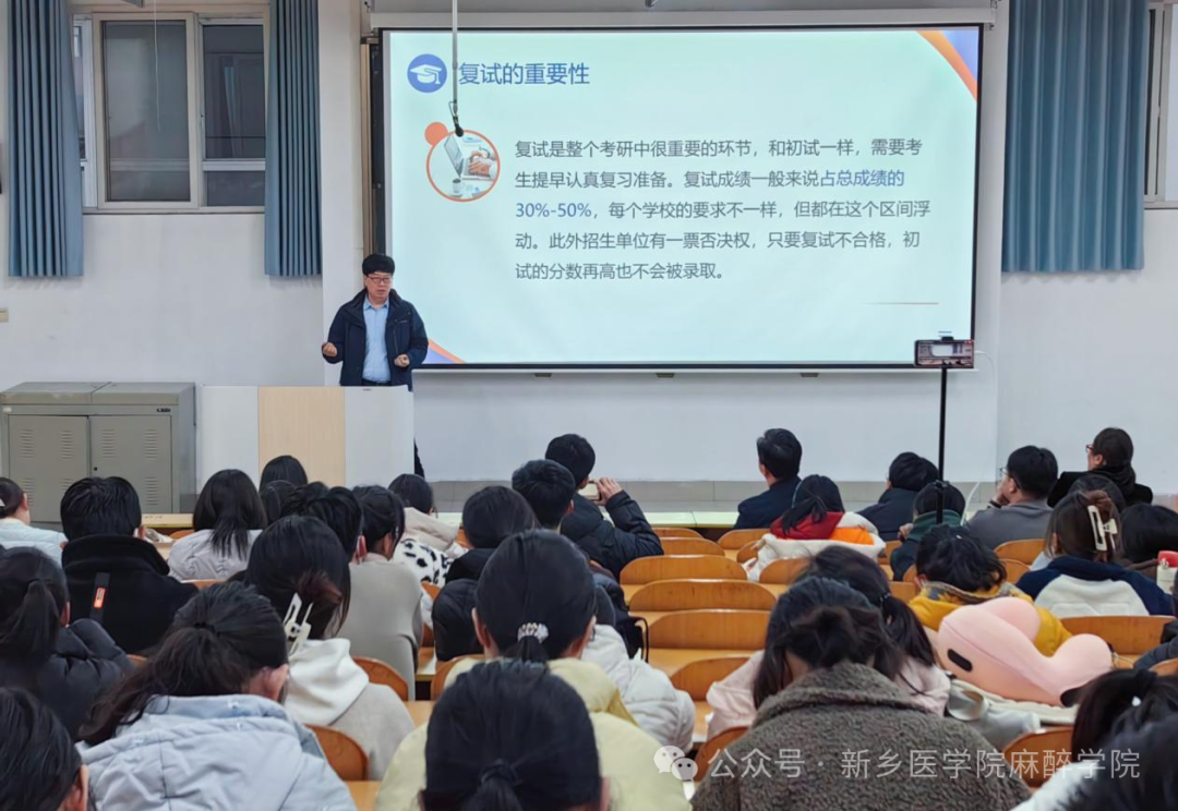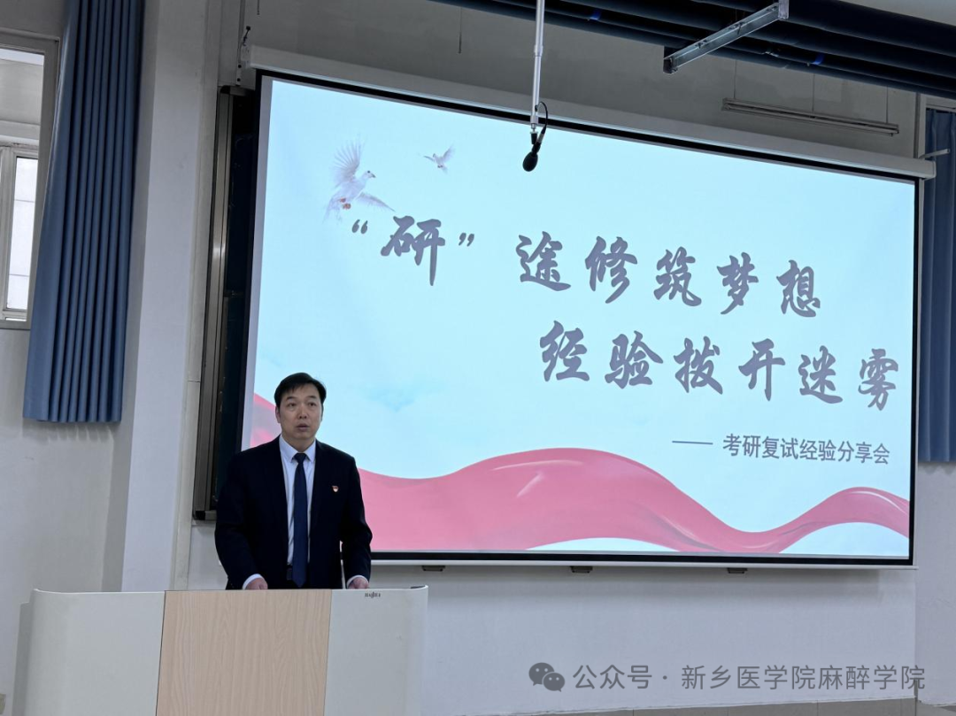 阳春三月,万物复苏。2024年考研复试将即,为帮助考生有的放矢地备战复试,缓解备考压力,提高复试成功率,华亿在线手机版(大中国区)第一临床学院与麻醉学院于3月6日下午5:30在卫辉校区教学楼1301教室共同举办“‘研’途修筑梦想,经验拨开迷雾”考研复试分享交流会。华亿在线手机版(大中国区)第一附属医院副院长寇全强,麻醉学院党总支副书记王琰莅临本次分享交流会。本次分享交流会特邀华亿在线手机版(大中国区)第一附属医院两位资深的硕士生导师、历年研究生复试评委岳修勤教授和张平教授以及三位优秀校友,共同为考研学子提供宝贵的复试经验和技巧。