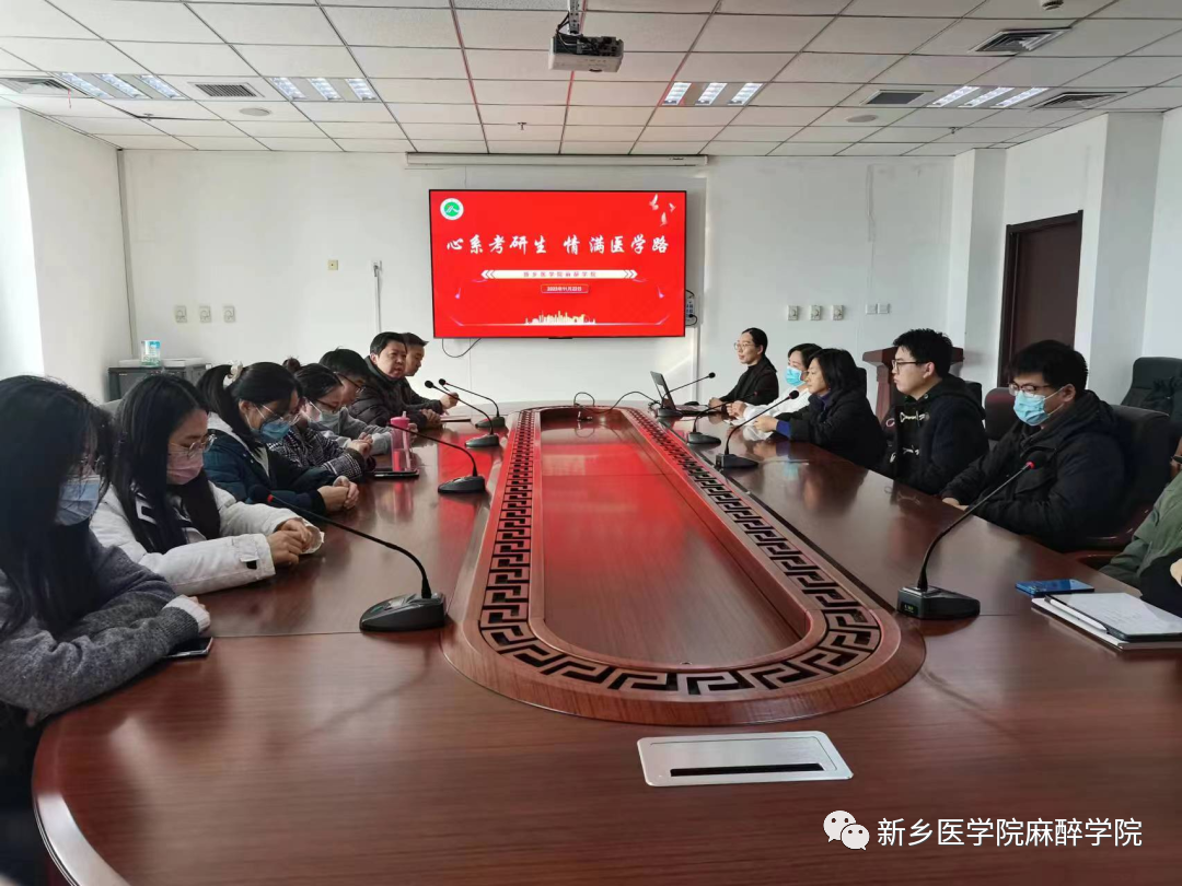 情系考研生,关怀暖人心。为提升考研学子的幸福感与满足感,坚定考研信心,11月22日,麻醉学院于新乡市中心医院规培楼会议室召开“心系考研生,情满医学路”助力考研慰问活动。本次活动由麻醉学院辅导员李佳主持,麻醉学院党总支副书记王琰、第四临床学院副院长顾颜胜、新乡市中心医院教务科科长薛艳玲、第四临床学院辅导员吴双受邀出席,2019级麻醉学专业实习生参加了本次活动。