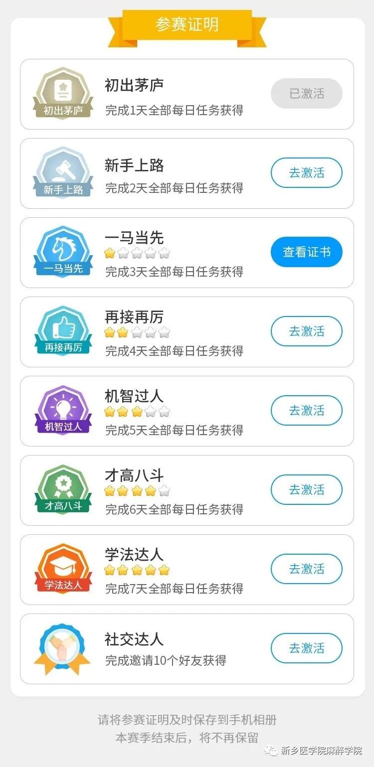 称号徽章或参赛证明