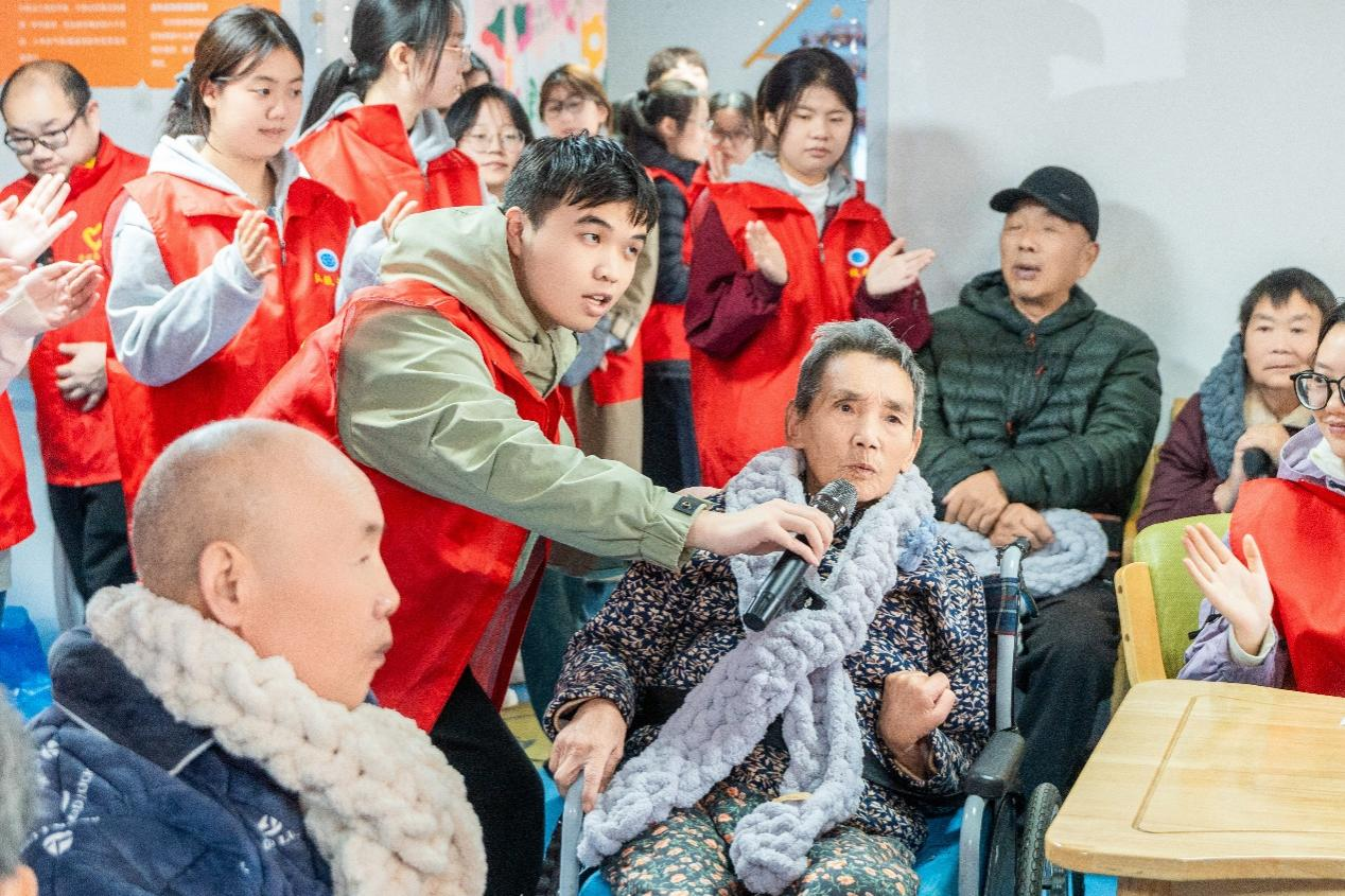 紧接着,志愿者们将亲手编织的围巾送到每位老人手中,柔软的织物裹住脖颈,也将温暖稳稳送到老人们的心间。