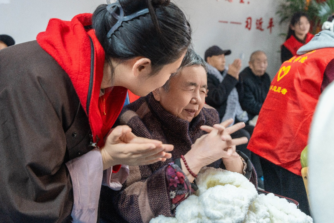 考虑到卧床老人的需求,部分志愿者专程前往房间探望,为他们轻声送上节日祝福,细致询问身体状况,让卧床的长辈也能感受到节日的关怀。活动间隙,志愿者们还围坐在老人身旁交流谈心,静静倾听老人们讲述过往的难忘故事,耐心回应每一句叮嘱与分享,温暖在彼此的对话中静静流淌。最后,志愿者们齐声向老人们送上祝福,将现场的温情推向高潮。