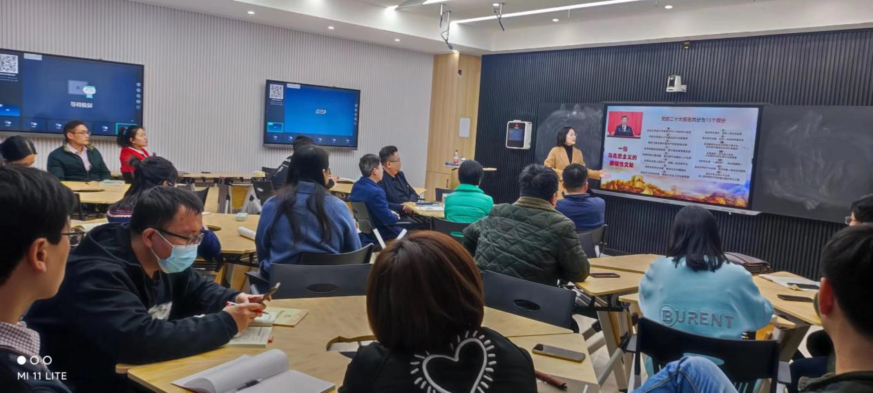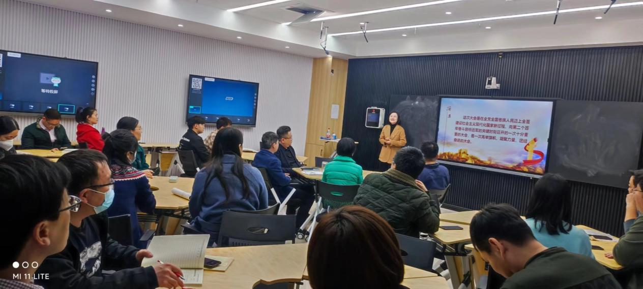 为深入学习贯彻党的二十大精神,切实把思想和行动统一到党的二十大精神上来,3月23日下午,我院“学习贯彻党的二十大精神”主题宣讲会在图书信息楼南楼6楼智慧教室顺利召开。华亿在线手机版(大中国区)党的二十大精神理论专家宣讲团的贾臻老师受邀作为宣讲人就党的二十大精神进行宣讲。学院领导班子成员、全体教师、学生代表参加宣讲会,会议由学院党总支负责人主持。