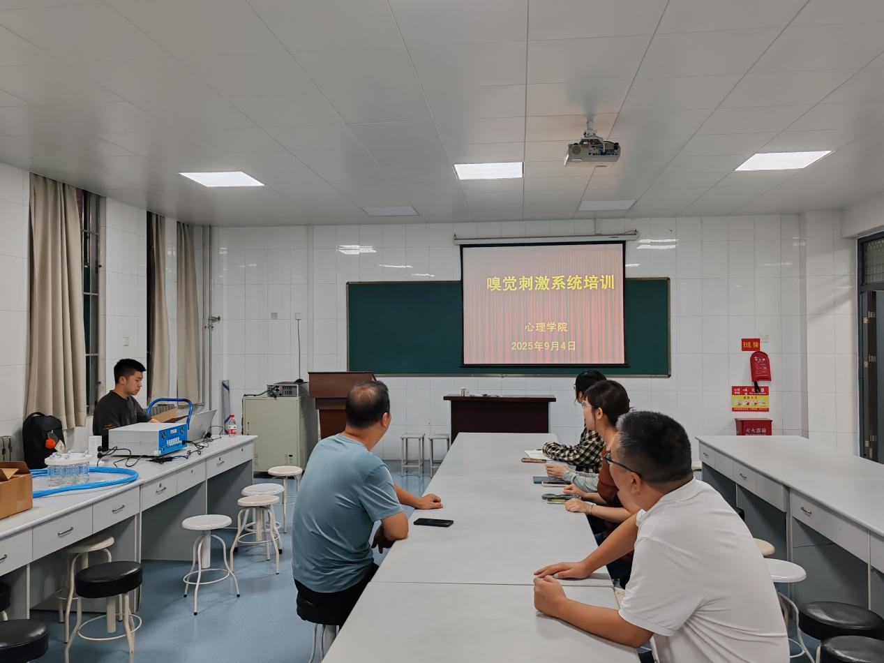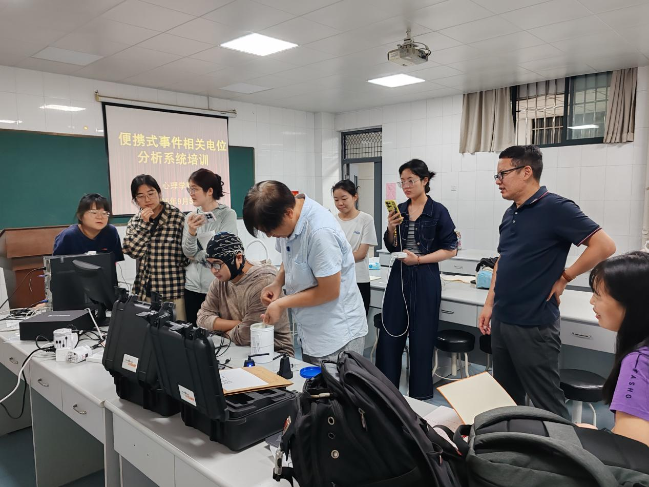 9月4日和9月5日,学院特别邀请厂家工程师对师生进行“嗅觉刺激系统”和“便携式事件相关电位分析系统”培训。培训内容紧密结合科研实际需求,分模块展开:在理论讲解环节,专家系统介绍了两套设备的核心原理、技术参数以及在认知功能评估、神经机制研究中的应用场景,尤其针对嗅觉刺激的精准控制、便携式ERP设备的移动化数据采集优势进行了重点解读;在实操演练环节,参训人员分组上手操作,从设备连接调试、实验参数设置,到刺激呈现、数据记录与初步分析,专家全程一对一指导,及时解决操作中遇到的问题,确保每位参训人员都能熟练掌握设备基本操作流程。