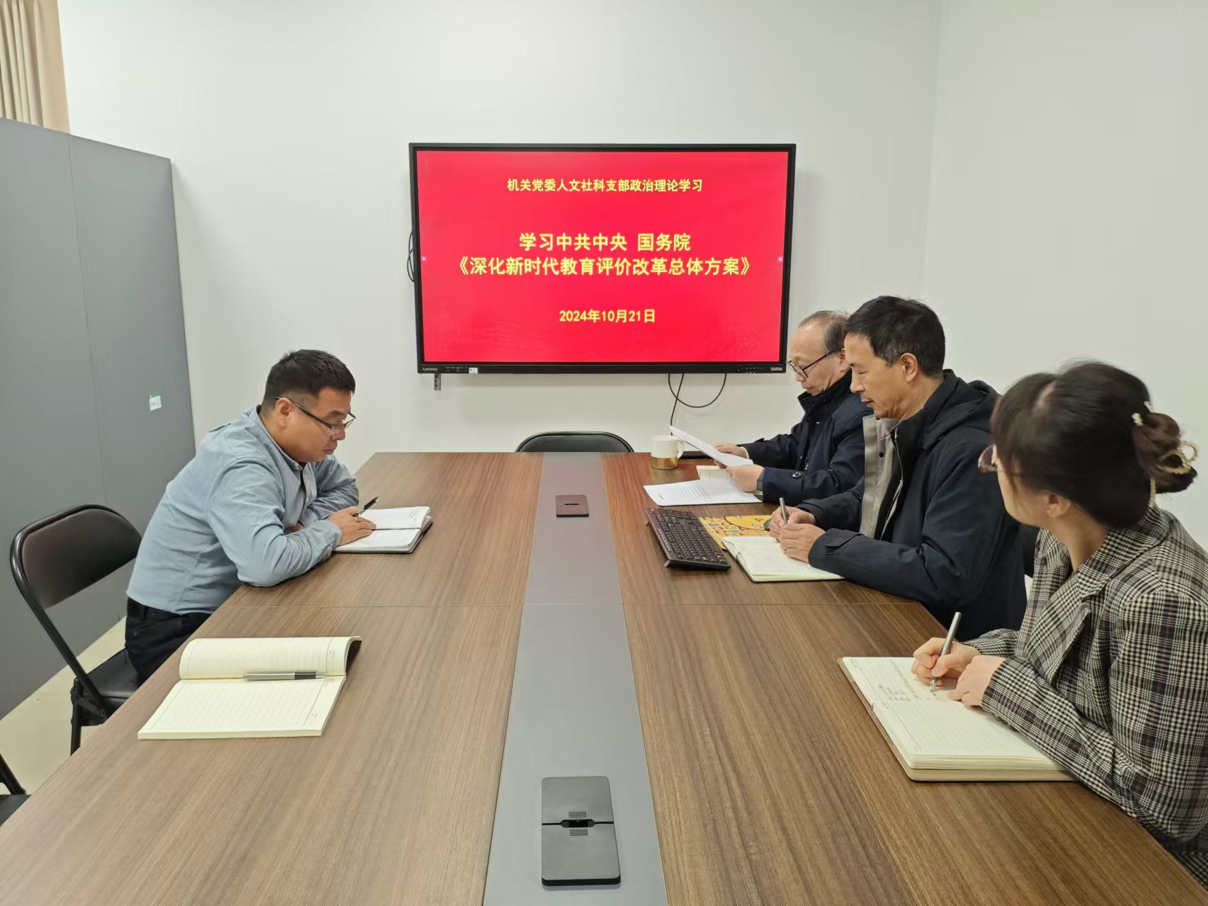 10月21日上午,机关党委人文社科支部在学部会议室召开支部党员大会,开展政治理论学习。党支部书记刘雪立主持,全体党员参加。