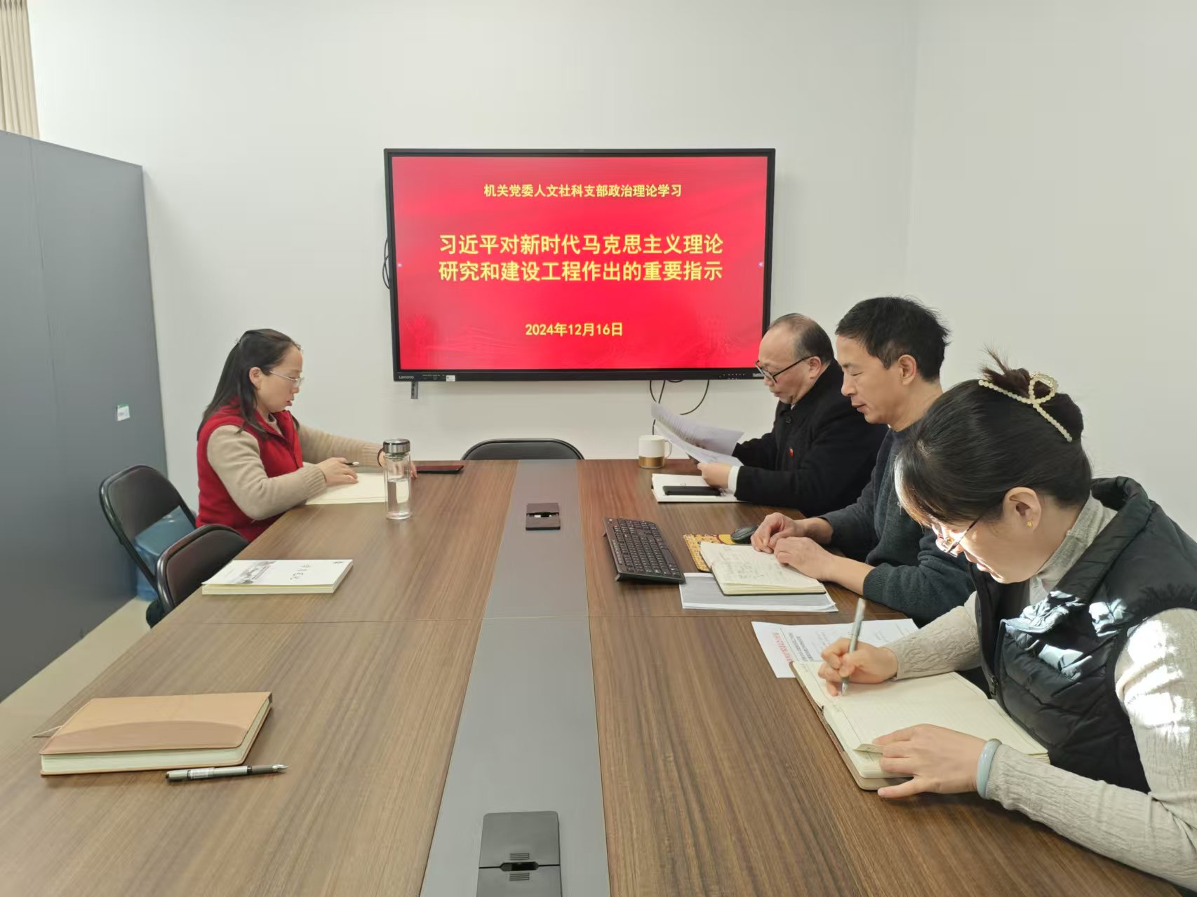 12月16日上午,机关党委人文社科支部在学部会议室召开支部党员大会,开展政治理论学习。党支部书记刘雪立主持,全体党员参加。