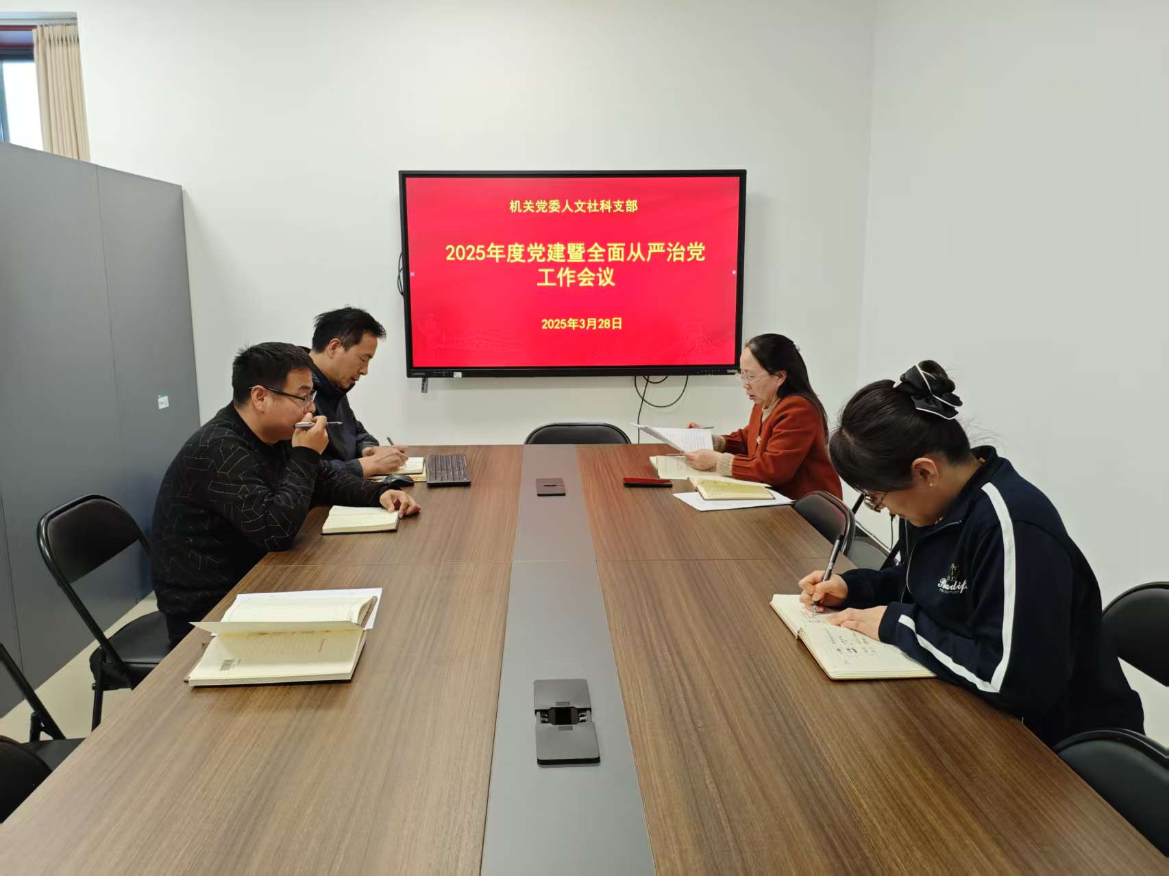 3月28日上午,机关党委人文社科支部在学部会议室召开2025年度党建暨全面从严治党工作会议,传达学习上级有关会议精神,安排部署2025年度党建和全面从严治党工作。党支部副书记冯秋季主持,全体党员参加。