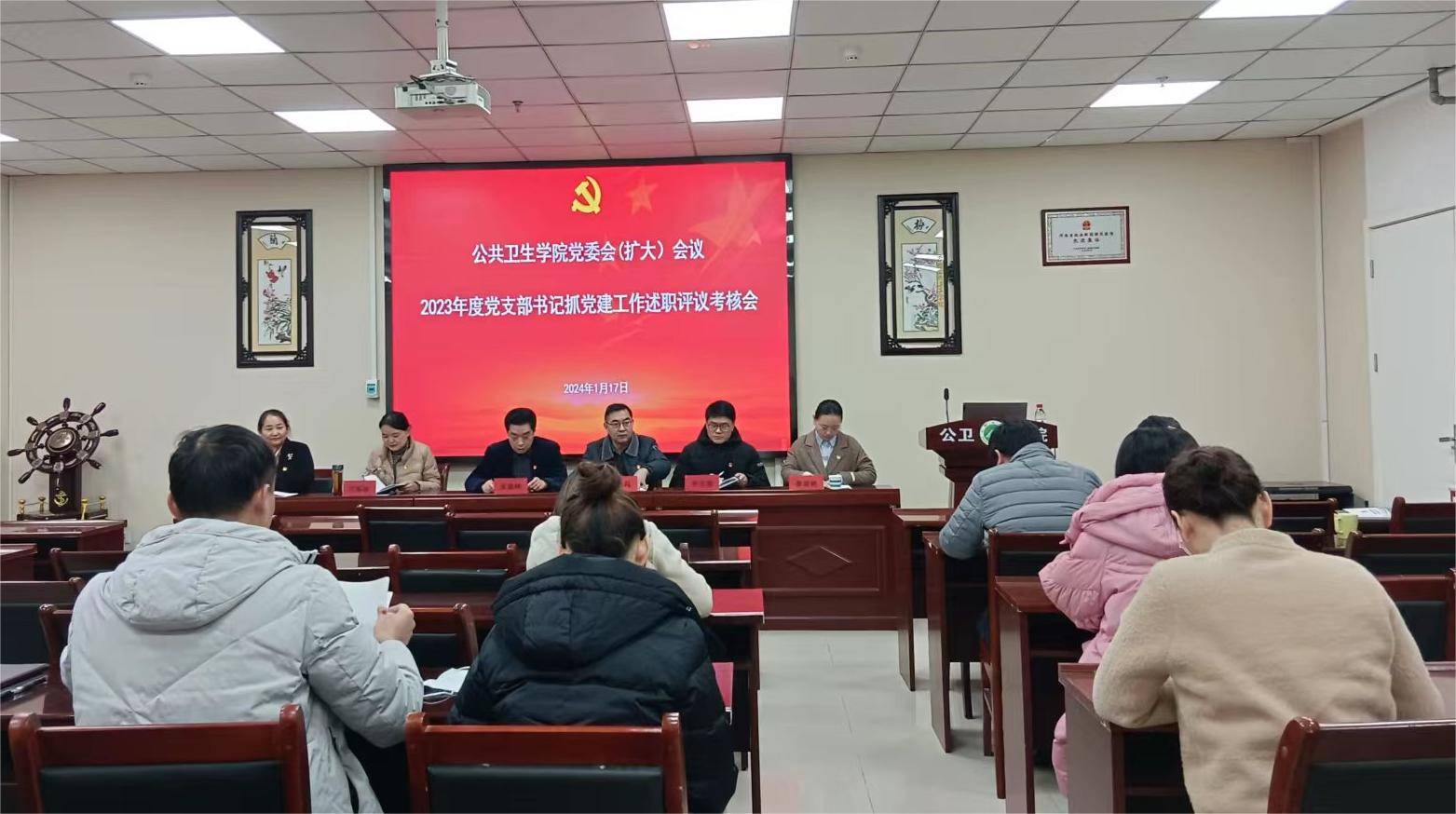 为进一步推动全面从严治党向基层延伸,切实提升党建工作质量,根据学校相关要求,公共卫生学院党委于1月17日在院学术报告厅召开党委扩大会议,开展2023年度基层党支部书记抓基层党建工作述职评议考核。院党委书记朱森林主持会议并讲话,院党委班子成员、党支部书记、支部委员、党员代表参会,组织部组工干部出席会议。