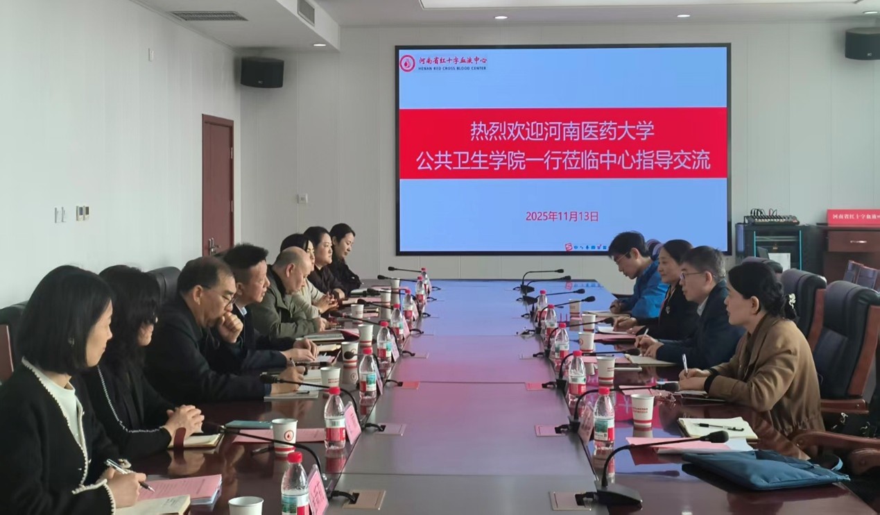在交流环节,双方立足优势互补、资源共享的合作理念,紧密结合国家医疗卫生事业发展的新趋势、血液中心的核心职能与采供血工作未来发展趋势,以及高水平公共卫生学院的学科布局、实践教学体系建设、科研协同创新、人才联合培养以及一流专业培育等议题展开了深入且富有成效的探讨。双方达成构建协同创新、互利共赢的合作意向,将充分发挥各自优势,在学科建设、人才培养、科研创新等多方面开展深度合作,共同助力河南省医疗卫生事业的高质量发展。(供稿:董新文;审核:张晨光)