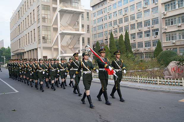 10月18日,新学期升国旗仪式在五环广场举行。校领导陈建国、任文杰、郝红军、陈清江、王辉、雒保军、朱武凌、邵金远出席仪式。校学生工作领导小组成员单位主要负责人,各学院党委(党总支)书记、副书记、团委书记、辅导员及学生代表200余人参加升国旗仪式。