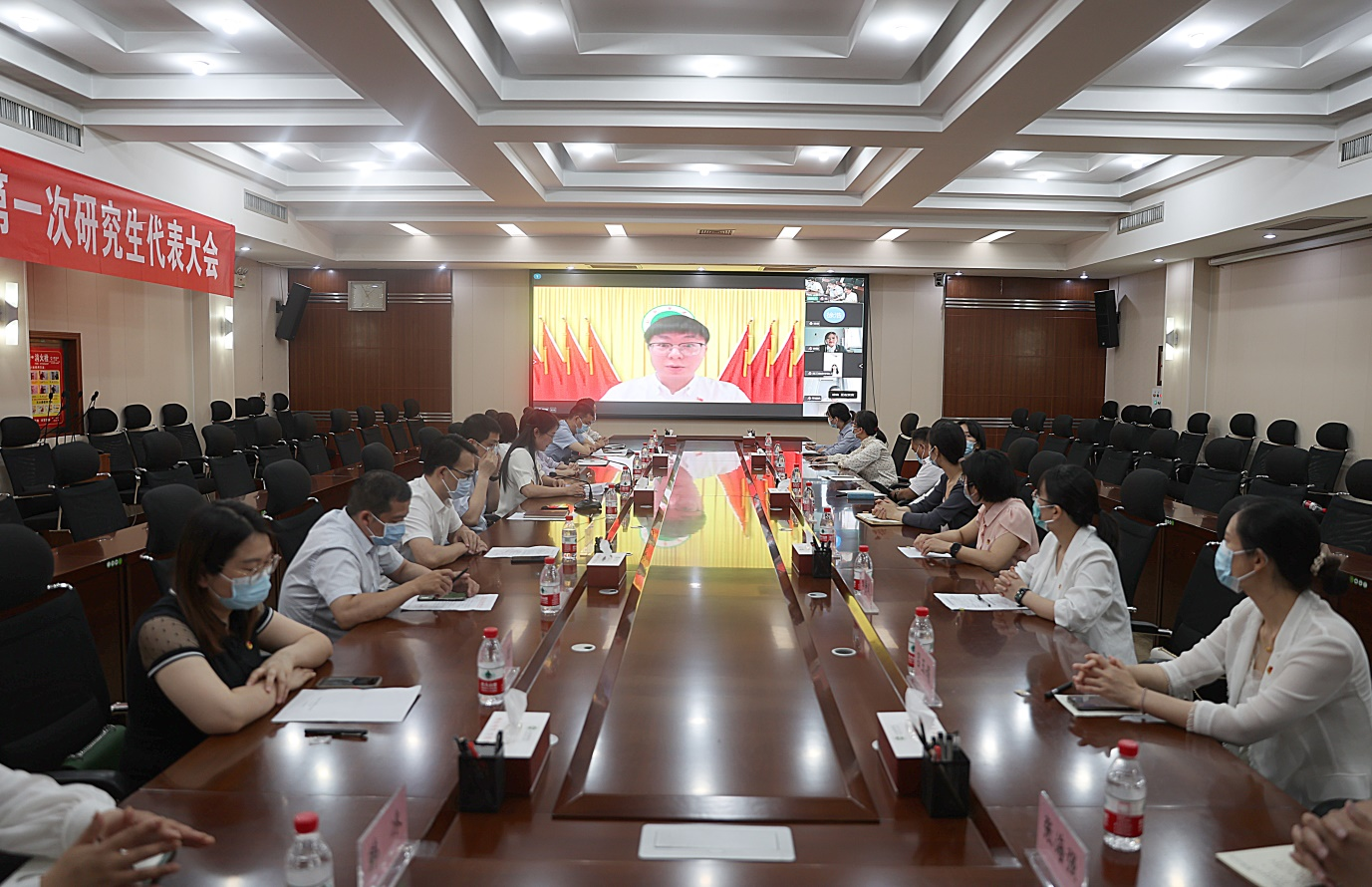 6月7日上午,我校第七次学生代表大会暨第一次研究生代表大会开幕式在勤政楼六楼会议室以视频会议形式召开。校团委负责人及研究生处、各学院团委负责人和全体学生代表等204人参加会议。