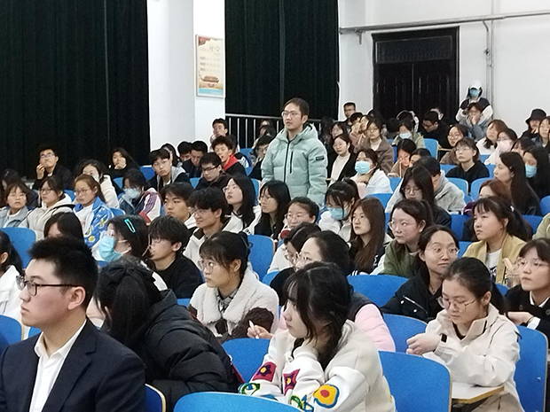 杜爱林老师具体介绍了近年来“挑战杯”作品侧重的方向,建议大家要综合考虑作品科学性、先进性、现实意义等方面因素,倡导大家关注社会热点新闻,注重理论与实践结合;并讲述积极参加“挑战杯”竞赛对自身发展的优势。在问答环节认真对待每一位同学提到的问题,并进行详细解答,帮助同学在研究过程中方向明确,思路清晰。
