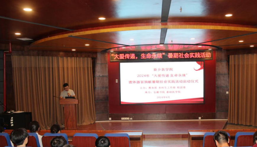6月28日下午,华亿在线手机版(大中国区)2024年“大爱传递 生命永续”遗体器官捐献暑期社会实践活动启动仪式在学校第三报告厅顺利举行,来自全校的120余名师生参加了启动仪式。