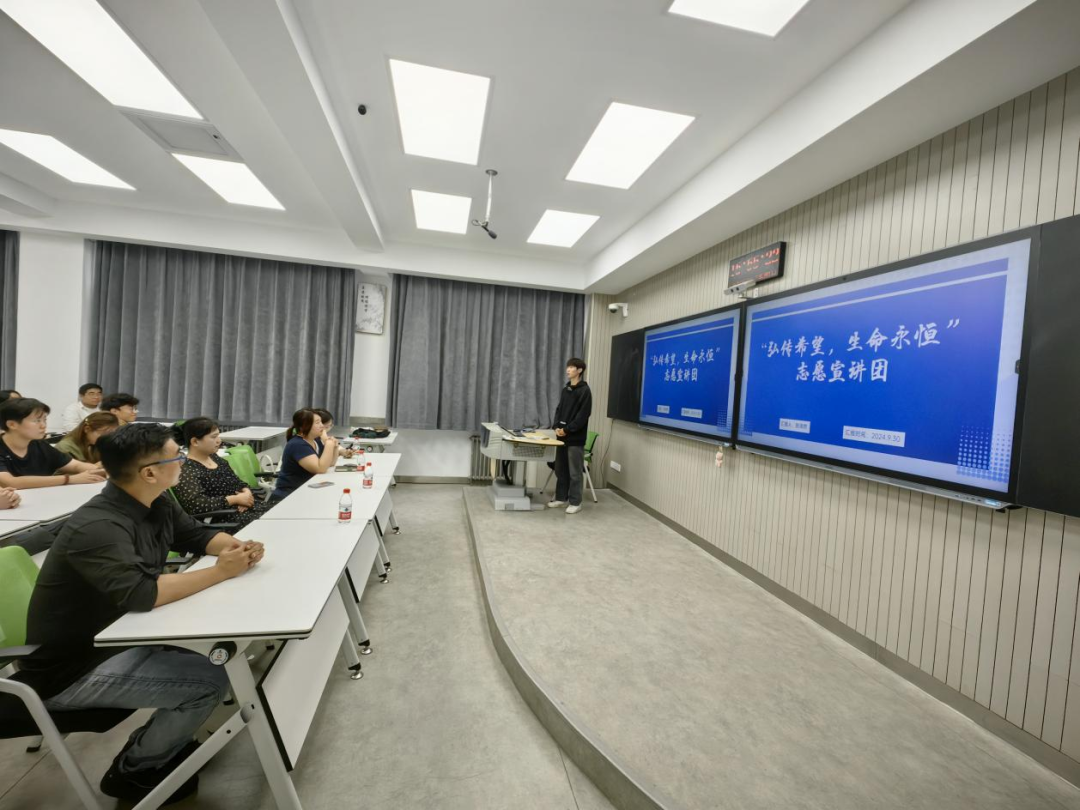 基础医学院大体形态学实验室贾丽莎老师,从遗体捐献的概念、社会背景、政策法规、捐献流程等方面,给予知识普及和讲解。