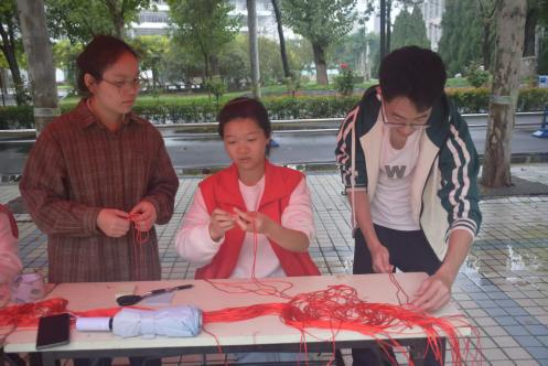 “方寸载鸿愿,锦盒寄山河”环节,同学们执笔在信笺上写下“愿祖国山河锦绣,岁岁长安”“以青春之名,赴时代之约”,将心意装入锦盒;“锦绣山河绘,斑斓中国梦”绘画创作中,天安门、高铁、航天飞船等元素跃然纸上,成为青年眼中“中国梦”的生动写照;“巧手中国结,非遗迎国庆”体验里,志愿者手把手教学编织中国结,红绳翻飞间,非遗魅力与爱国情怀完美融合。