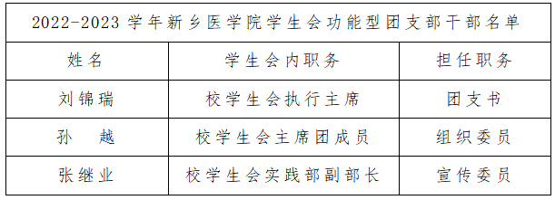 现拟定校学生会功能型团支部干部名单,公示如下:
