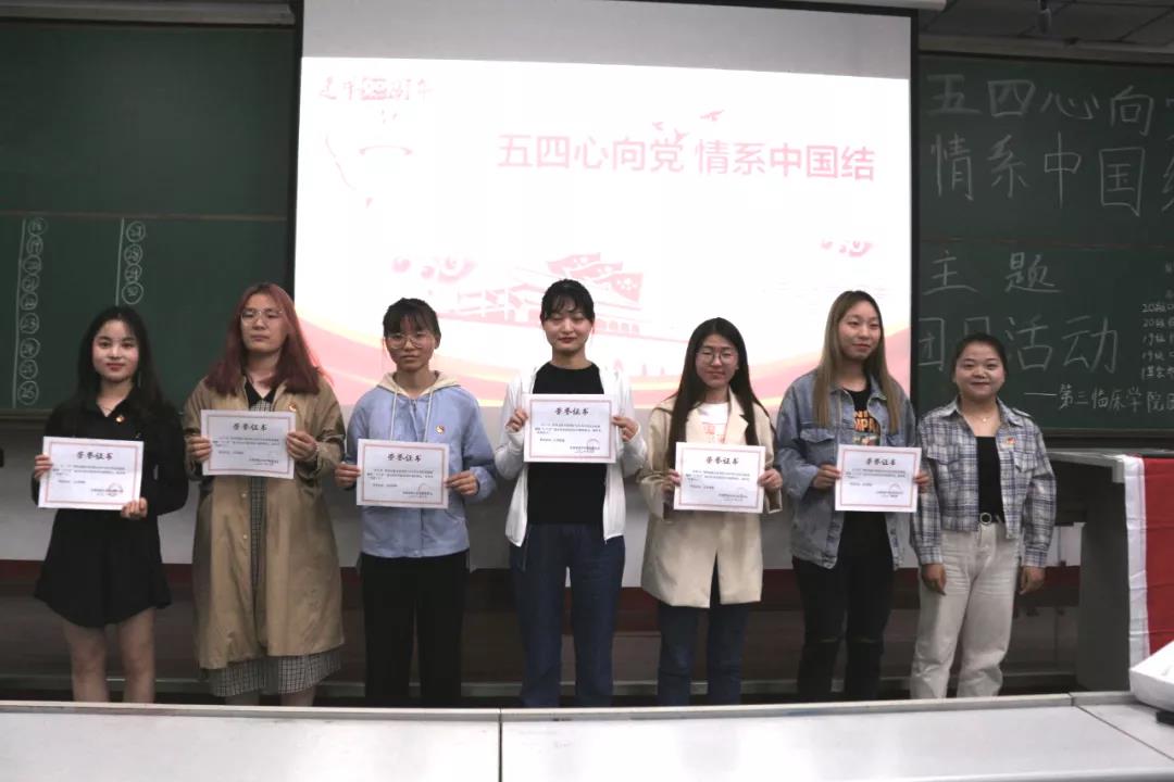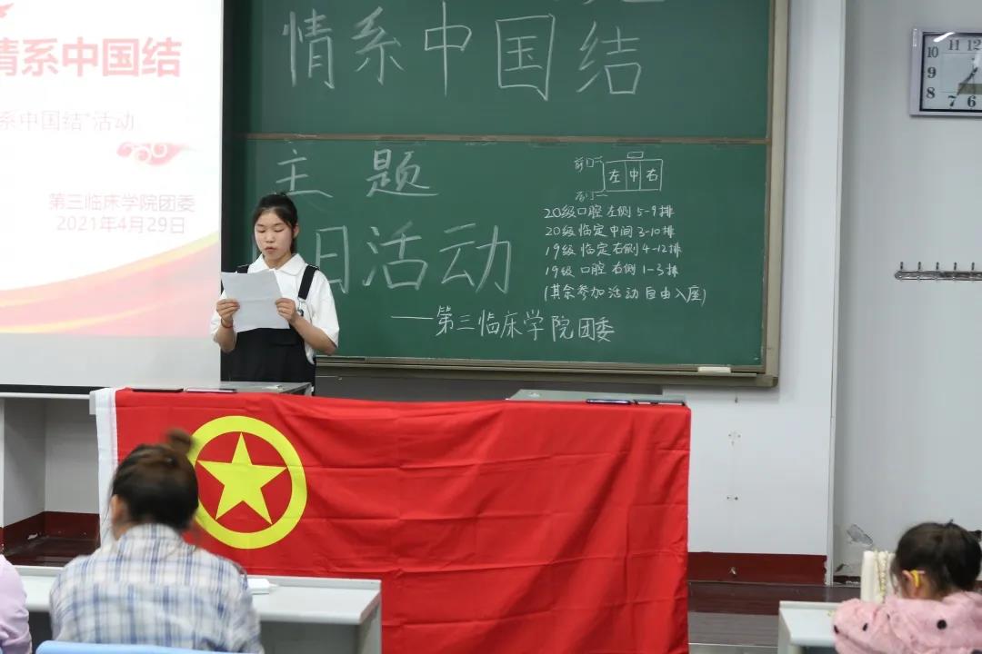 建党一百周年之际,为纪念五四运动,进一步弘扬“爱国、进步、民主、科学”的五四精神,充分发挥青年团员在繁荣校园文化和推进素质教育中的作用,引导和激励青年团员继承和发扬五四精神,4月29日,我校第三临床学院于第三教学楼3103教室开展以“五四心向党,情系中国结”为主题的团日活动,辅导员胡淑珍、朱晓稳出席本次活动,19、20级全体优秀团员参与此次活动。