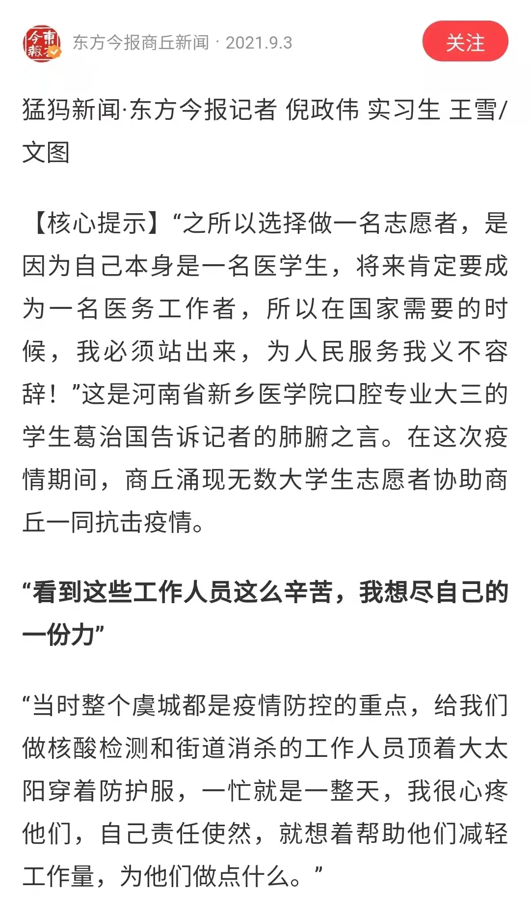 商丘籍大学生葛治国:在志愿者队伍中奉献年轻力量
