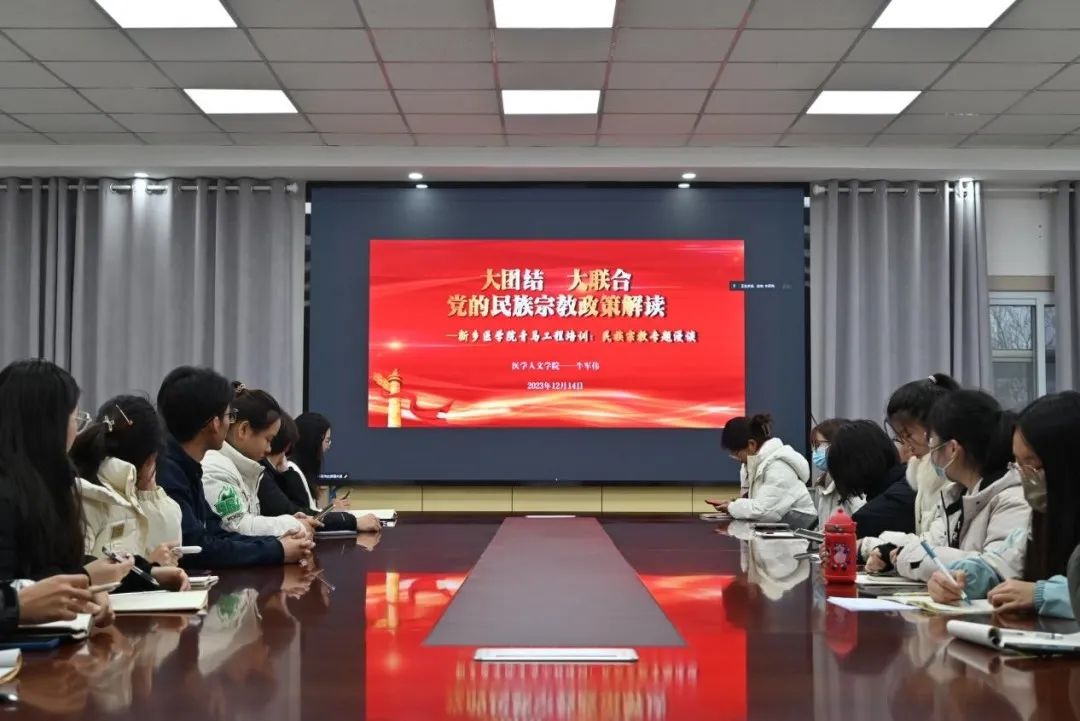 会上,牛老师带领同学们深入学习了习近平总书记关于加强和改进民族工作的重要思想、关于宗教工作重要论述,结合《大学生中国特色社会主义民族宗教理论知识手册》向同学们详细介绍了民族宗教政策法规的重要内容,重点强调了宗教活动的合法性和合规性,以及在校园中抵制非法宗教和邪教组织的重要性。随后,牛老师带领同学们观看了宗教政策法规和反邪教宣传视频,结合视频内容进一步为同学们讲解了邪教的区分方式与校园宗教渗透的危害。最后,牛老师从对待宗教活动的态度方面对学生们提出新的希望和要求,希望同学们树立正确的宗教观,进一步增强防范、抵御宗教渗透的自觉性和主动性。