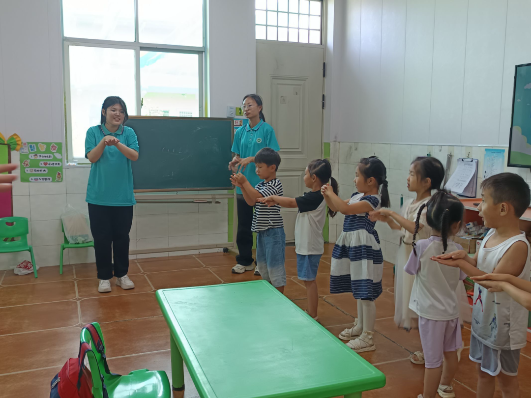 7月2日,队员们进行实地考察,确定小朋友们的作息时间和兴趣爱好。7月3日,队员们设计了语文、数学等基础课程以及音乐美术等兴趣课程,同时队员们还根据专业知识,为小朋友们精心准备手卫生和防溺水等课程。7月4日上午,队员们到达榆林乡中心幼儿园,为96个孩子开启了支教课程。活动过程中,通俗易懂的课程和生动有趣的讲解让课堂氛围十分活跃,小朋友们踊跃回答问题。尤其是在手卫生和防溺水课程中,取得了非常好的教学成果,小朋友们积极上台展示七步洗手法,动作标准。对于小朋友们的疑惑,队员们也耐心答疑,并在问答过程中为小朋友们分发精心准备的学习用品。