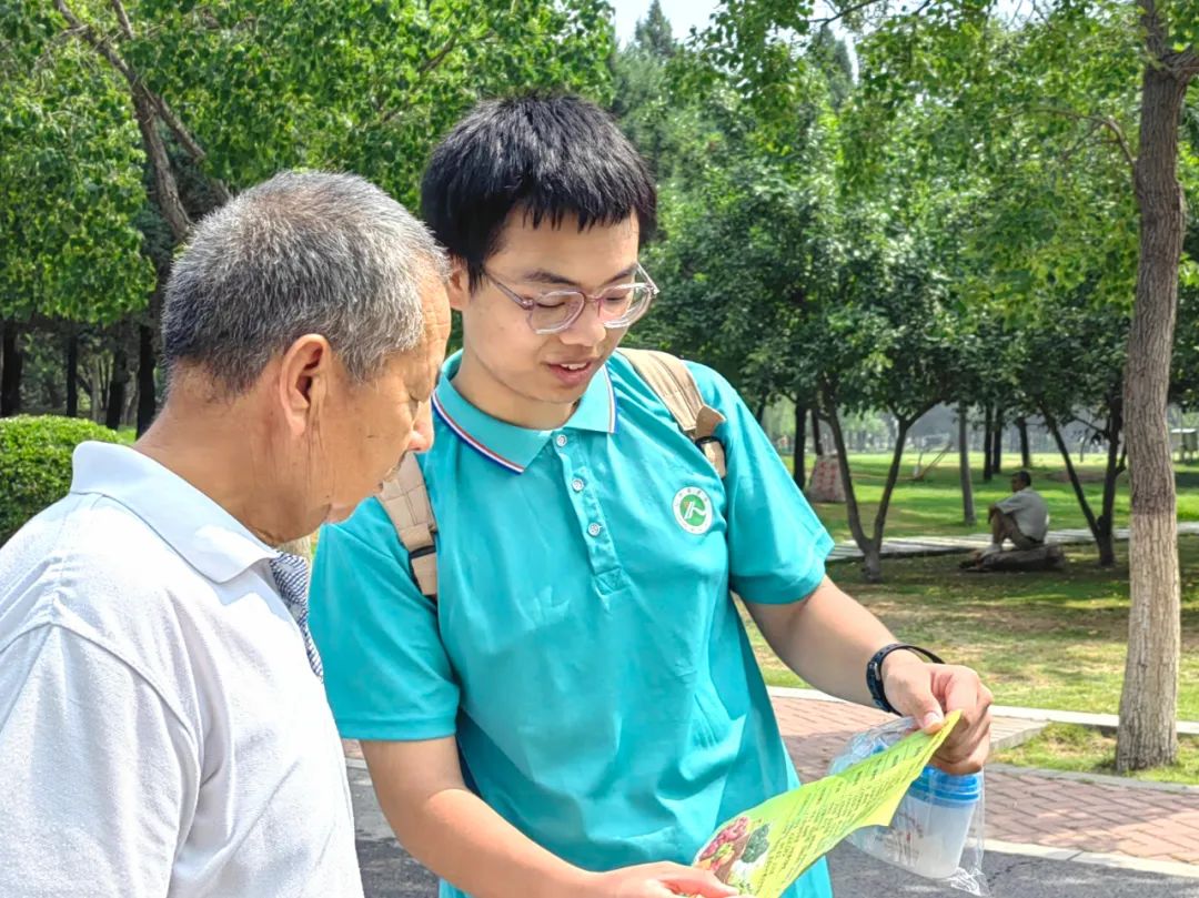 宣讲之前,实践队员就宣传页的制作及调查问卷的设计作了深入的讨论和周密的计划。活动现场,团队通过设立服务展台,与居民互动问答等多种形式,向居民们阐述了食物与疾病预防之间的紧密联系,耐心地讲解如何通过合理搭配食物来增强免疫力、预防常见疾病。团队还分享了实用的健康食谱和饮食建议。宣讲结束后,实践队员走进社区周边、人民公园及定国湖附近开展调研和宣传活动,根据不同年龄阶段人员对慢性病的认知程度有侧重点地进行宣讲,并就群众提到的问题给予耐心的解答。