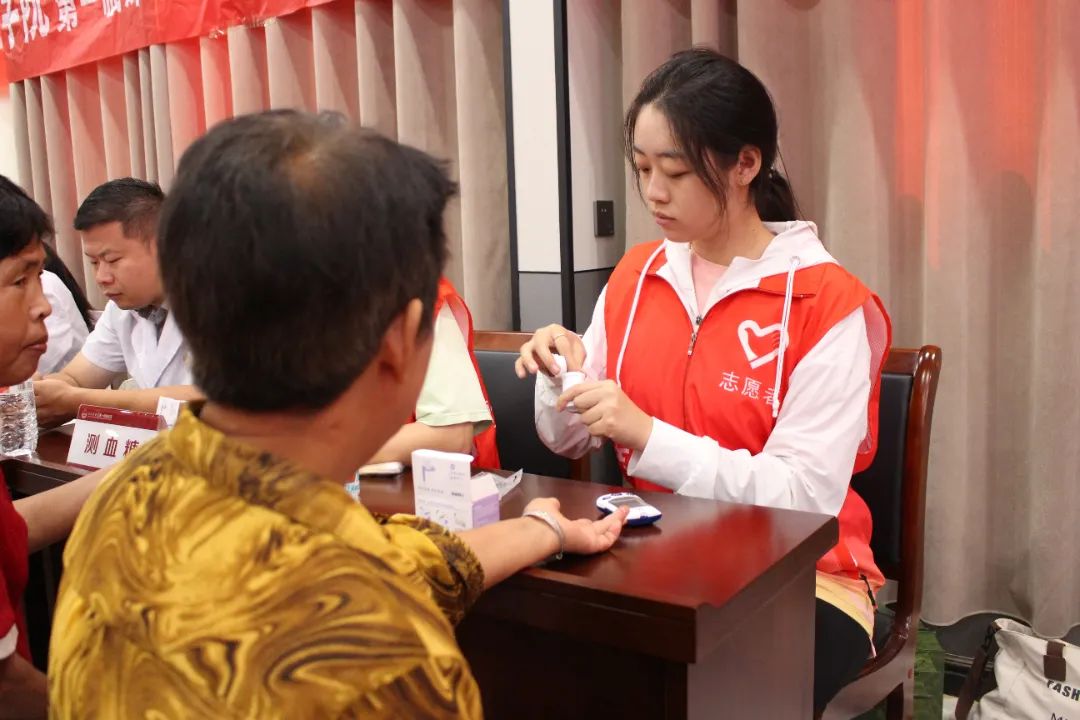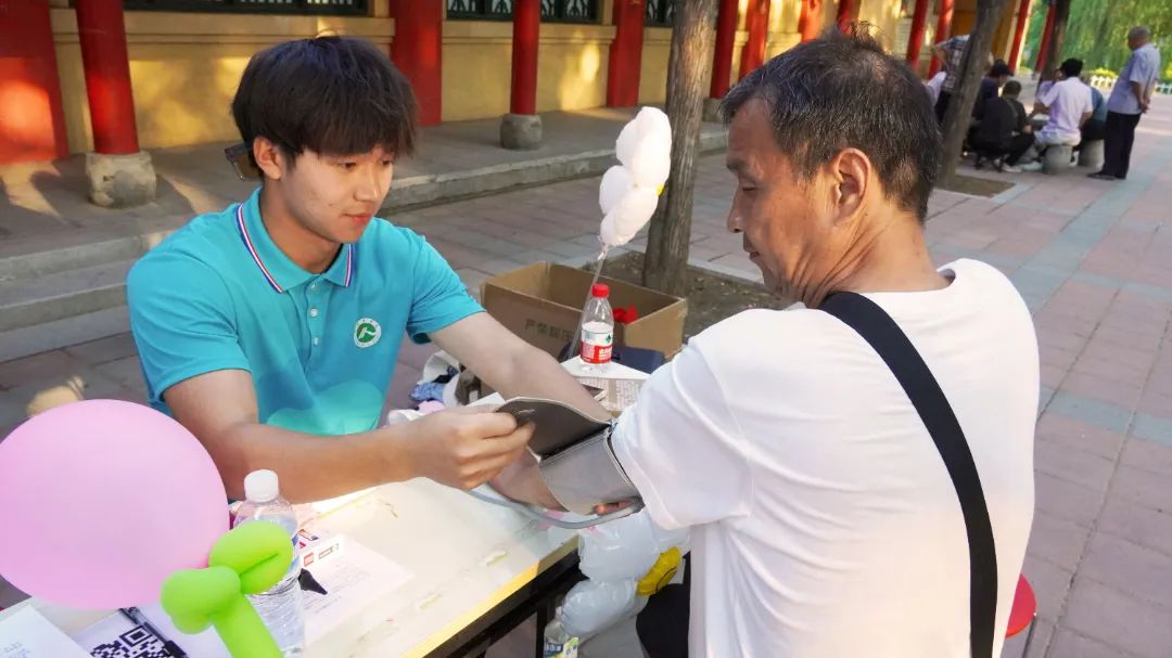 活动现场井井有条,实践队员们分工明确,提前到达现场,搬运并摆放好所需的桌椅、帐篷、医疗设备等物品。活动现场划分为不同的区域,包括测量血糖区、问诊区、检查区等。在测量血糖区,志愿者们耐心为老人测量血糖,并亲切地与老人交谈,了解他们的健康状况。在问诊区,专家们针对村民们的不同病症,提出合理的诊疗建议和详细的治疗方案。他们凭借丰富的临床经验和耐心负责的工作态度,赢得了村民们的高度好评。在检查区,医疗专家对村民们进行骨密度、胸透、心电图、身高和体重等检查。整个活动现场洋溢着温馨和关爱的氛围。