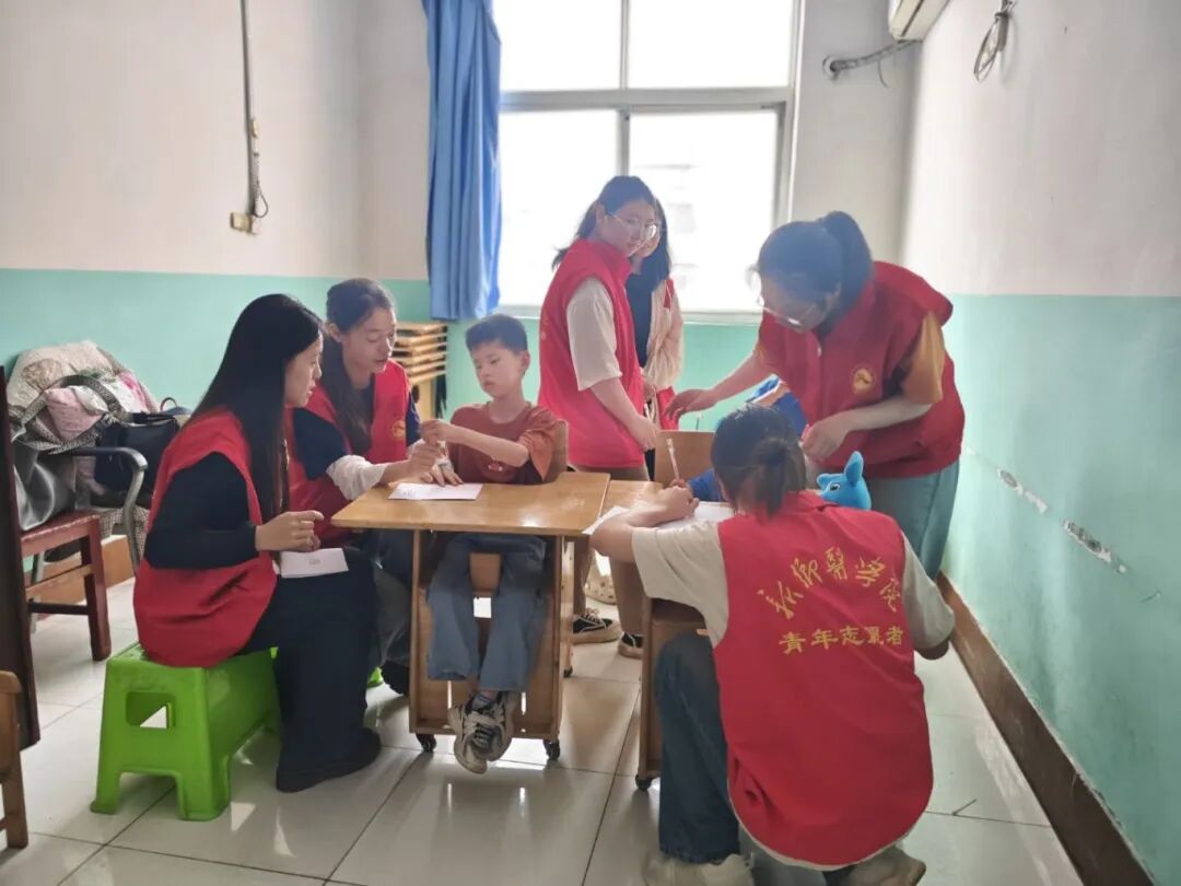 实践活动多线并行,6月28日至7月1日,在新乡市残联康复医院,志愿者们发挥医药专业优势,将康复理念转化为孩子们能感知的温暖,让医学人文的种子在基层土壤中扎根生长;6月29日,在新乡市社会福利中心,志愿者们设计“击鼓传花”游戏、分龄定制陪伴方案、为低龄儿童设计触觉探索游戏方案,更显青年智慧;6月30日至7月2日,在河南医药大学第三附属医院儿童康复科,志愿者们开展“快乐学习”课堂,用融合康复原理的设计,让治疗场景充满成长喜悦。