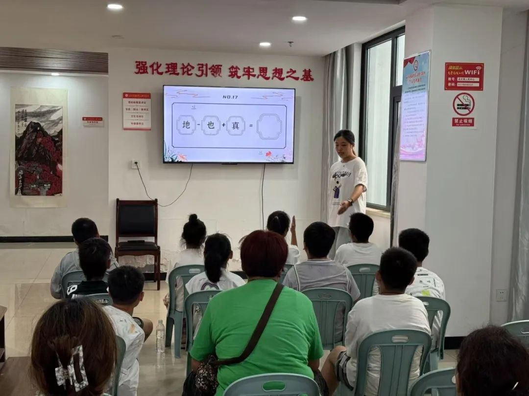 活动初期,实践团与孟庄镇镇团委书记座谈,了解到孟庄普通话使用现状,走访学校、集市、卫生院,发现当地“日常方言,正式蹩脚普通话”现象普遍。团队走进辉县市文化馆,剪纸传承人还特意准备了剪纸作品,作为送给孩子们的“推普礼物”。7月1日,孟庄镇政府活动室里,首堂“剪纸推普课”开讲。7月8日,团队来到南陈马村。针对村民“方言迎客”短板,开展“调研+体验+实践”立体推普活动。活动结束时,村民用普通话表示感谢,孩子送上拼音标注的剪纸。