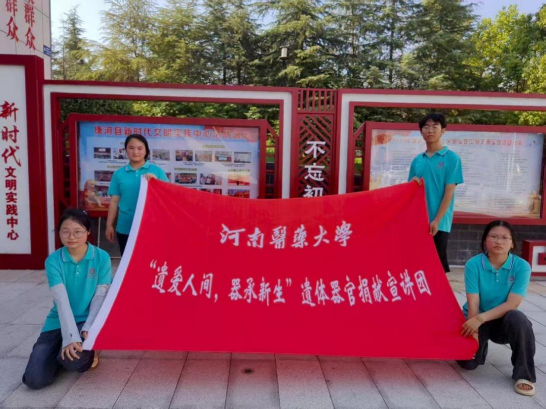 为提高人们对遗体器官捐献的了解,提升公众对遗体器官捐献的认知度和接受度,引导社会树立正确的生命价值观,由第一临床学院和第三临床学院组建的“生命礼赞,相约大爱”遗体器官捐献宣讲团于6月28日至7月3日在河南省新乡市和许昌市开展“三下乡”社会实践活动。