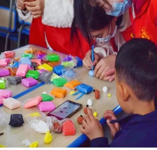 阳光明媚,清风微徐。阳光村的负责人丁巧荣院长热情地迎接了志愿者。在和煦的阳光中,孩子们略显羞涩,他们探出脑袋,用好奇的目光上下打量着到来的志愿者们。为尽快与孩子们熟悉起来,志愿者们带着他们开展了折纸课堂、橡皮泥课堂和绘画课堂等丰富有趣的活动,一张张彩纸被折成千纸鹤和纸飞机,随着孩子们的烦恼被一齐放飞;橡皮泥被捏成栩栩如生的卡通人物,体现出孩子们纯真的童心;房屋、汽车映在画纸上,寄托着孩子们对未来的美好期望……这些活动不仅带来了欢声笑语,还丰富了孩子们的想象力并提高了他们的动手能力。在志愿者的陪伴中,孩子们从开始的害羞好奇到后来的尽情投入,放声大笑,一张张笑脸如花儿般绽放,温暖着在场的所有人。志愿者们还贴心地协助丁院长进行了阳光村的卫生打扫。