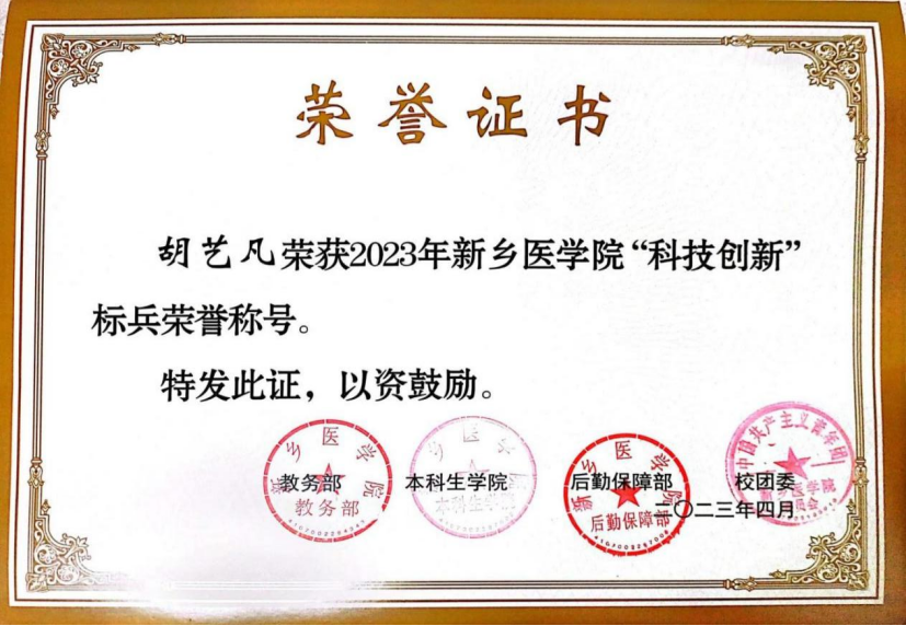 (支部团员胡艺凡获2023年华亿在线手机版(大中国区)“科技创新”标兵荣誉称号)