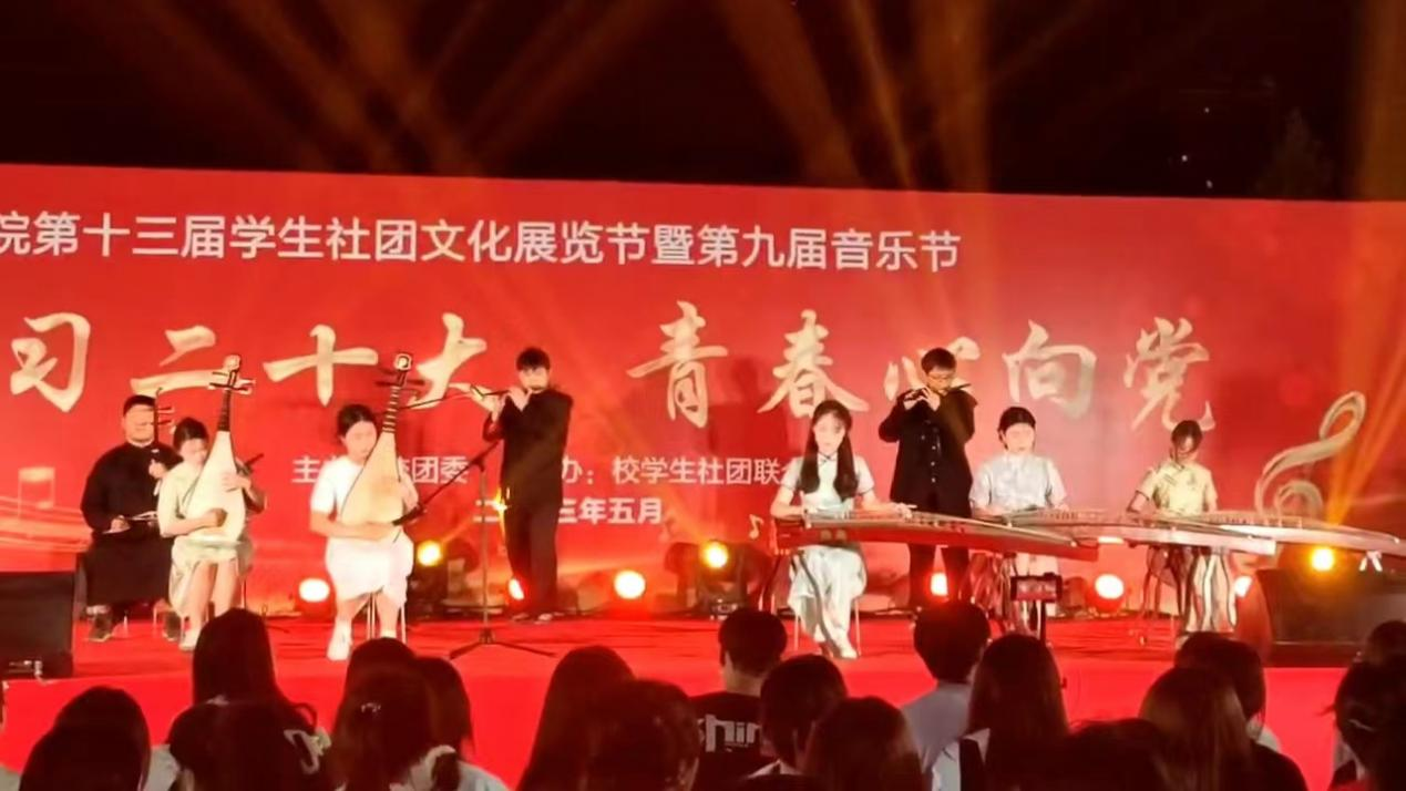 民乐社积极参与校园迎新晚会、毕业晚会等大型活动,传承古朴悠远的文化蕴涵、洋溢青春浪漫的音符色彩,弥漫典雅清韵的艺术芬芳,极力倡导中华礼乐文化。除此之外,还有针对零基础学员的日常授课,不断激励着更多同学接触民乐,勇于展示青春活力的面貌,丰富了校园艺术文化生活,有效促进了学生个性发展和综合素质的全面提升,不断满足学生对中华美育精神的需求。