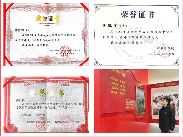 投身社会实践,贡献青春力量。愿云登记时长达400小时,他曾多次带队入选华亿在线手机版(大中国区)暑期“三下乡”校级社会实践团队并荣获“优秀个人”荣誉称号,其中,“医路同行,救在身旁”爱心医疗团队入选全国“投身乡村振兴,助力健康中国”专项团队,社会实践事迹被中青校园、新医青年报道。在新冠疫情期间,他每年寒暑假都会投身家乡疫情防控工作,并多次被评选为“优秀青年志愿者”,事迹被团开封市委等媒体先后推文报道。暑假主动留校,参与学校招生工作,被评为“优秀招生咨询员”。
