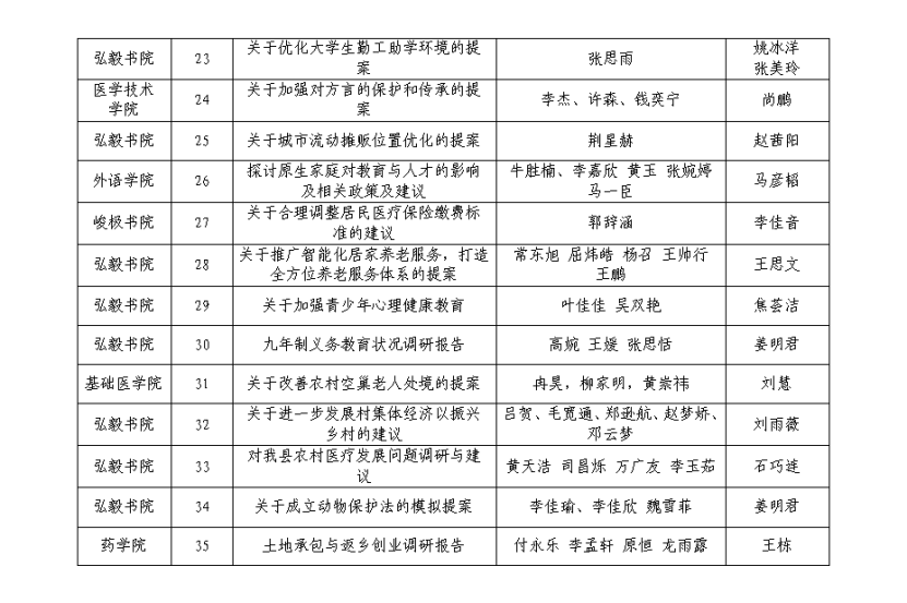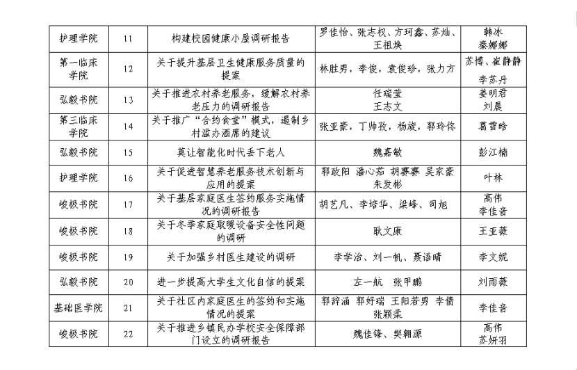 各基层团组织、学生组织:为深入学习宣传贯彻党的二十大精神,引导广大青年学生有序参与社会主义民主政治实践,准确理解全过程人民民主内涵实质,领悟新时代十年伟大变革背后的“制度密码”,坚定信念跟党走。校团委开展了我校青少年模拟政协提案调研活动。本次活动共征集调研报告189份,经专家评审,确定《关于乡村医疗废物处理情况的调研报告》、《关于在乡村振兴背景下,如何缓解乡村医疗供需矛盾的调查报告》等35份调研报告为优秀调研报告。