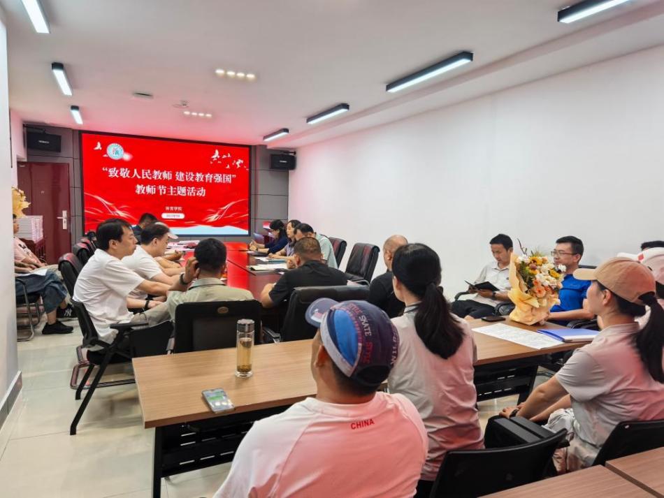 在第41个教师节来临之际,为弘扬教育家精神、凝聚育人共识,9月9日下午,体育学院在学院会议室举办“致敬人民教师,建设教育强国”教师节主题活动,学院全体教职工参会,学院副书记吕颖主持。