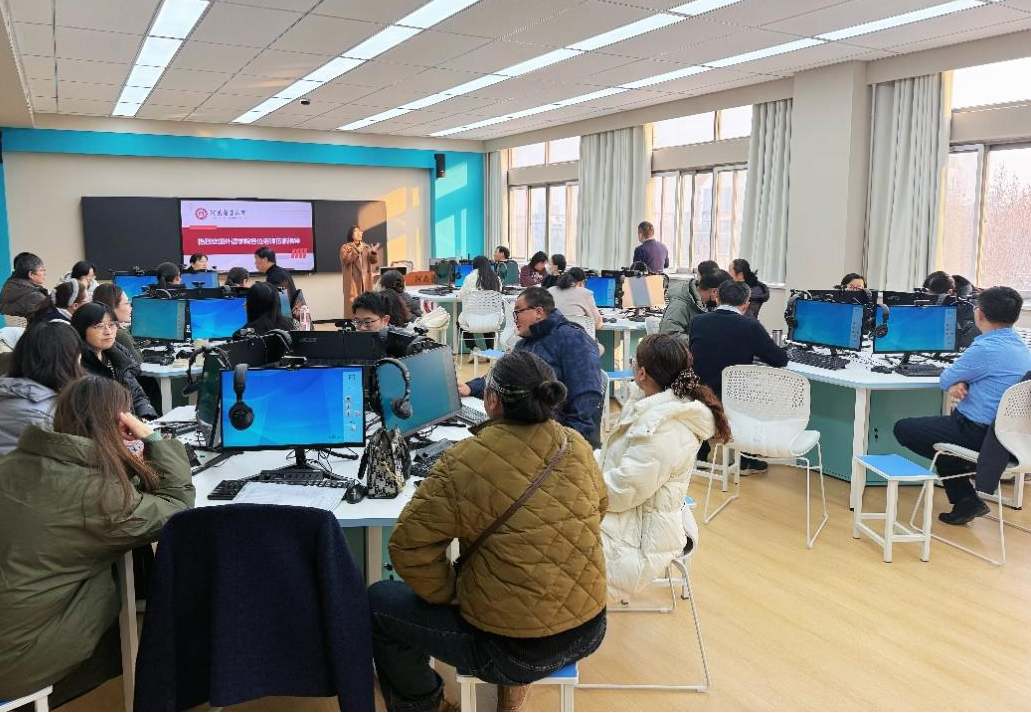 第三期工作坊于12月17日在博济楼智慧外语实践教学创新中心开展,聚焦智慧外语教学系统的实操培训。本期以“AI赋能新探索,智慧实训启新程”为主题,由学院语言实验室团队组织,重点讲解多通道智能录播、AI辅助发音训练及无纸化口语智能测评等核心功能。通过分组演练与实操,教师们逐步掌握系统操作要点,培训现场互动积极,学习氛围浓厚。