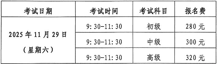 欢迎各位同学踊跃报名!报名及考试信息如下: