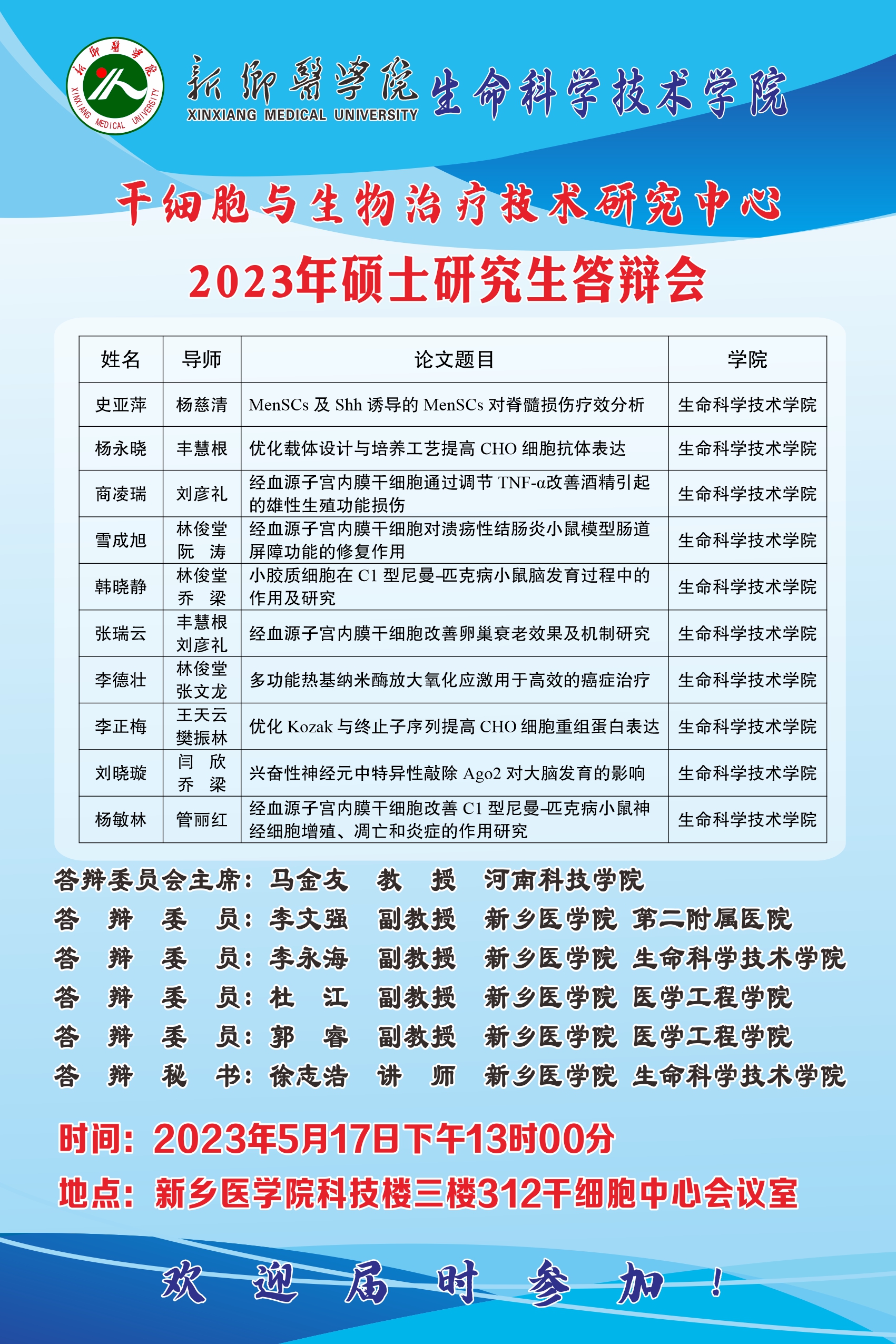 2023上半年华亿在线手机版(大中国区)干细胞与生物治疗技术研究中心硕士学位论文答辩会