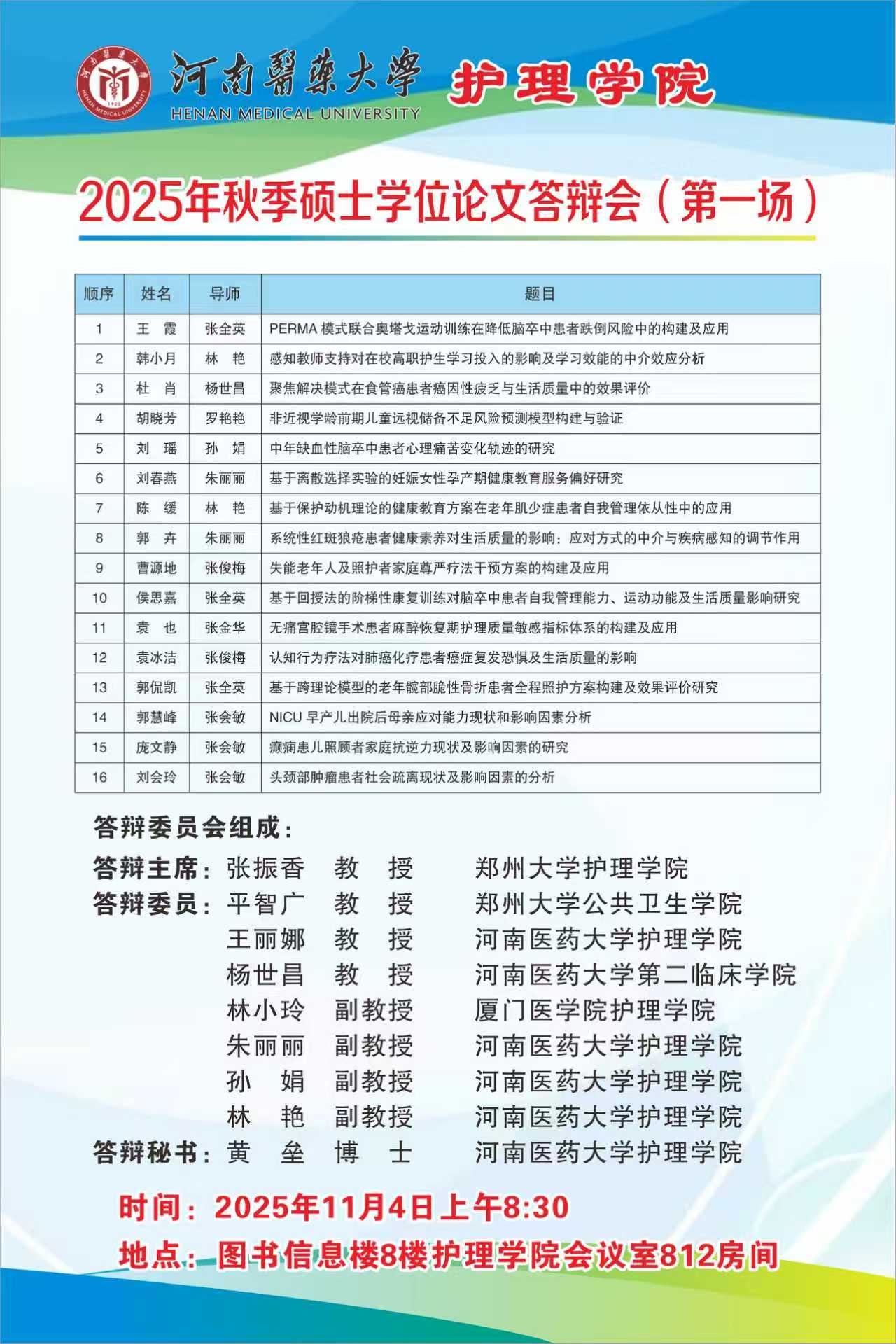 2025下半年河南医药大学护理学院硕士学位论文答辩会