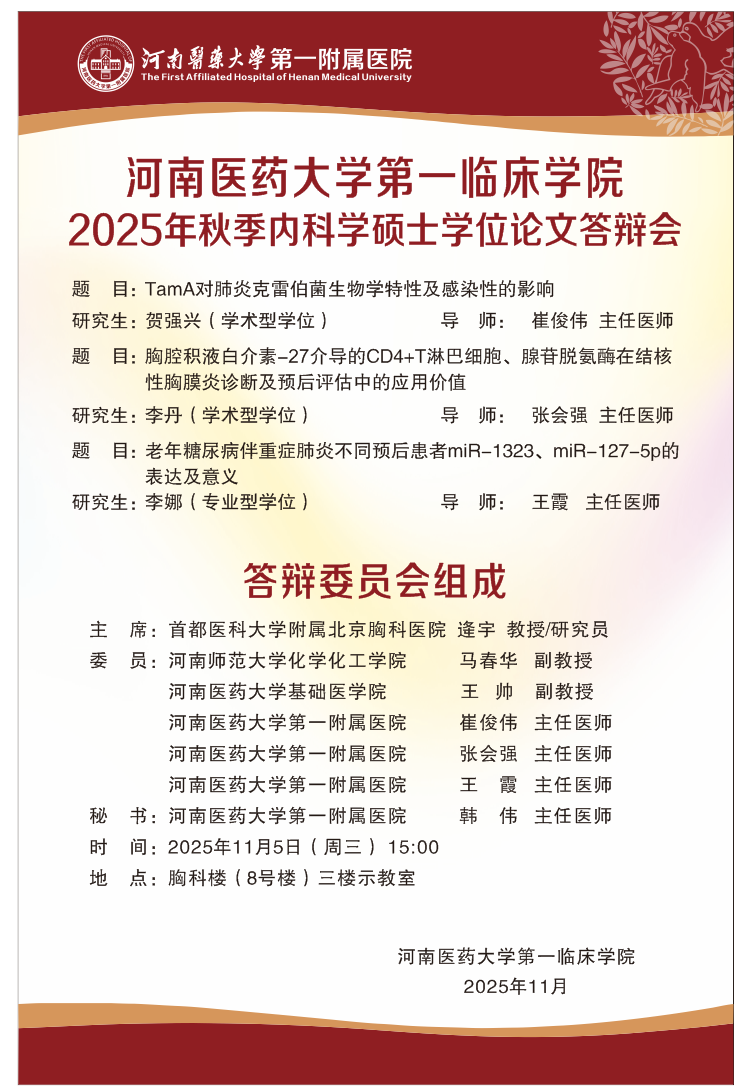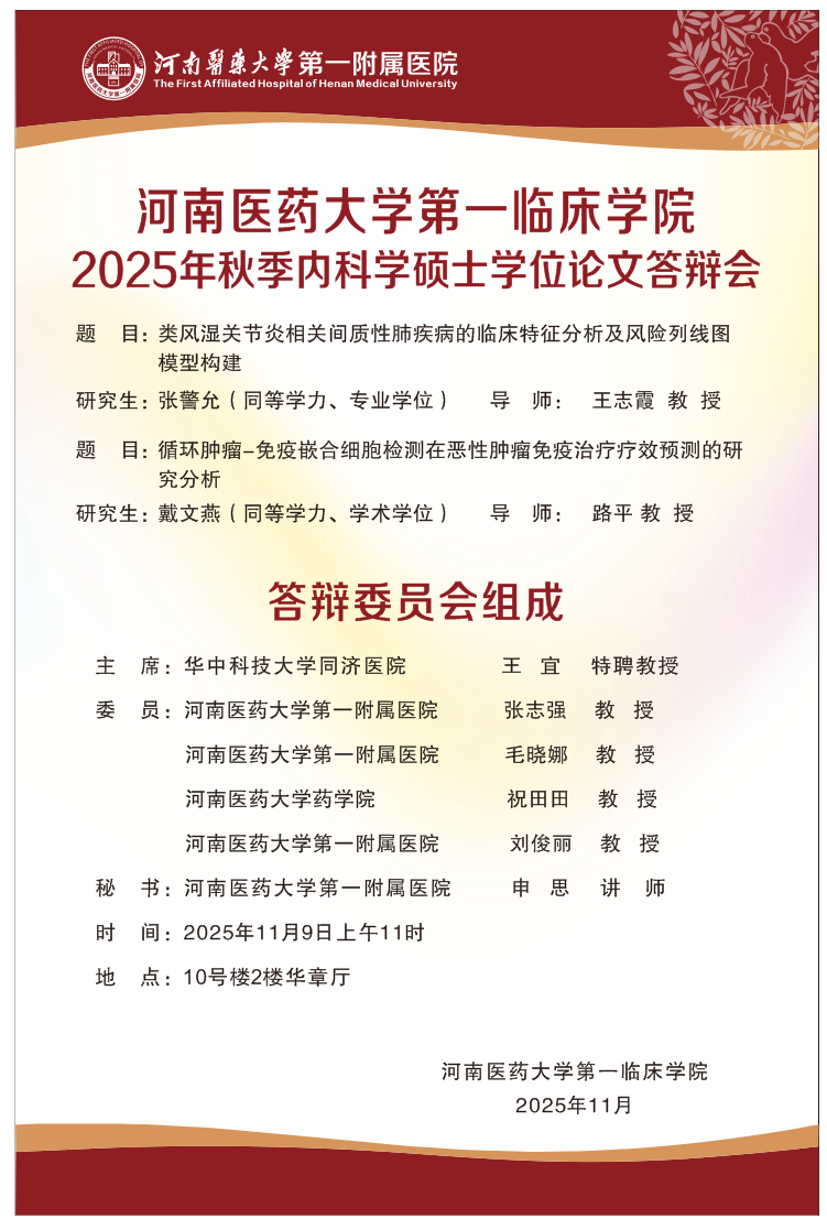 2025下半年河南医药大学河南省人民医院硕士学位论文答辩会