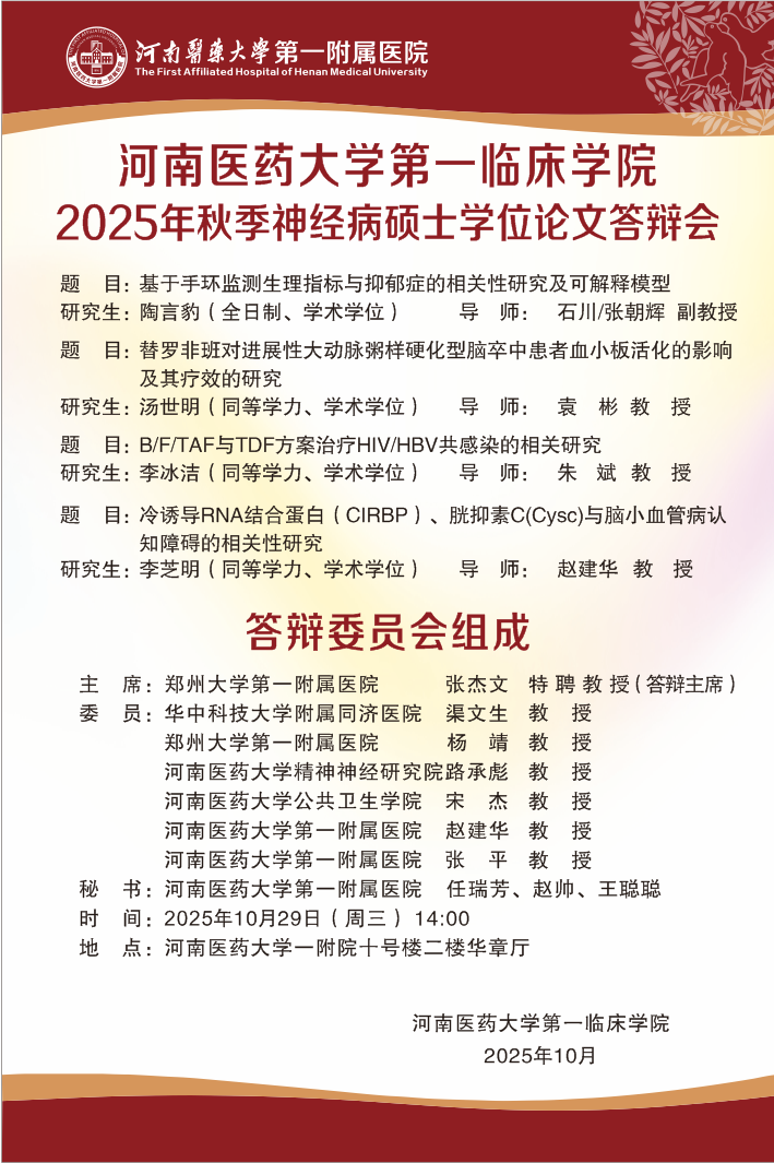 2025下半年河南医药大学第一临床学院硕士学位论文答辩会