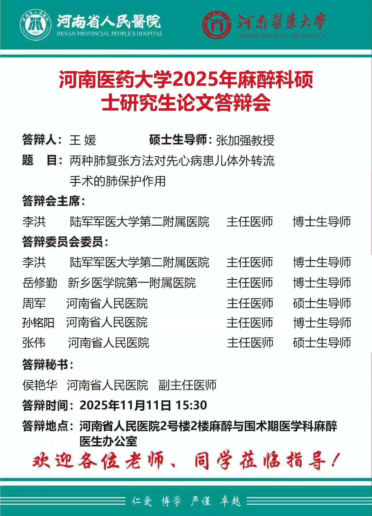 2025下半年河南医药大学河南省人民医院硕士学位论文答辩会