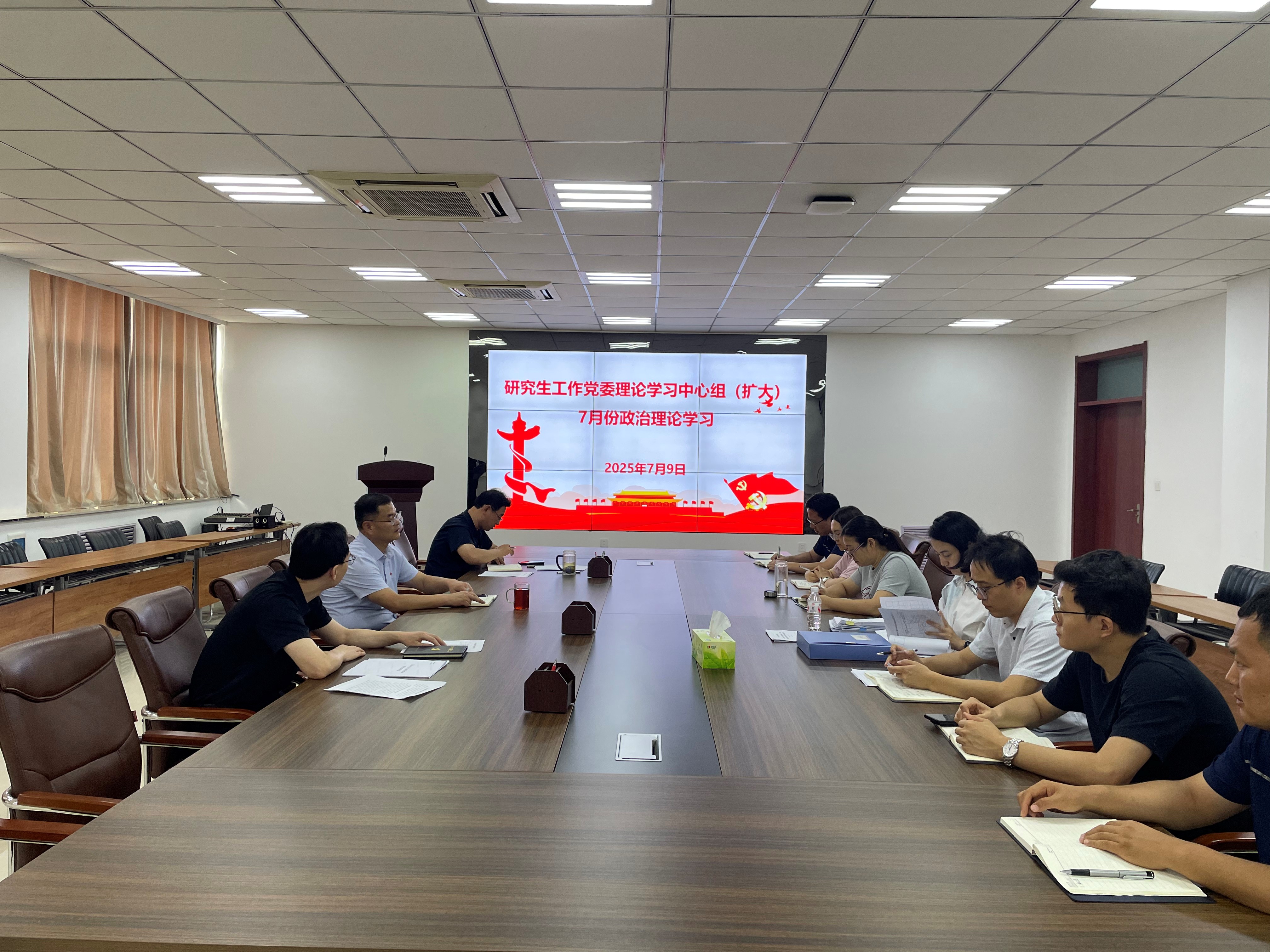 为深入学习贯彻习近平新时代中国特色社会主义思想,进一步推进全面从严治党,将新时代党的自我革命要求落实到位,7月9日,研究生工作党委组织召开7月份党委理论学习中心组(扩大)会议,党委班子成员及各科室党员同志积极参与会议。