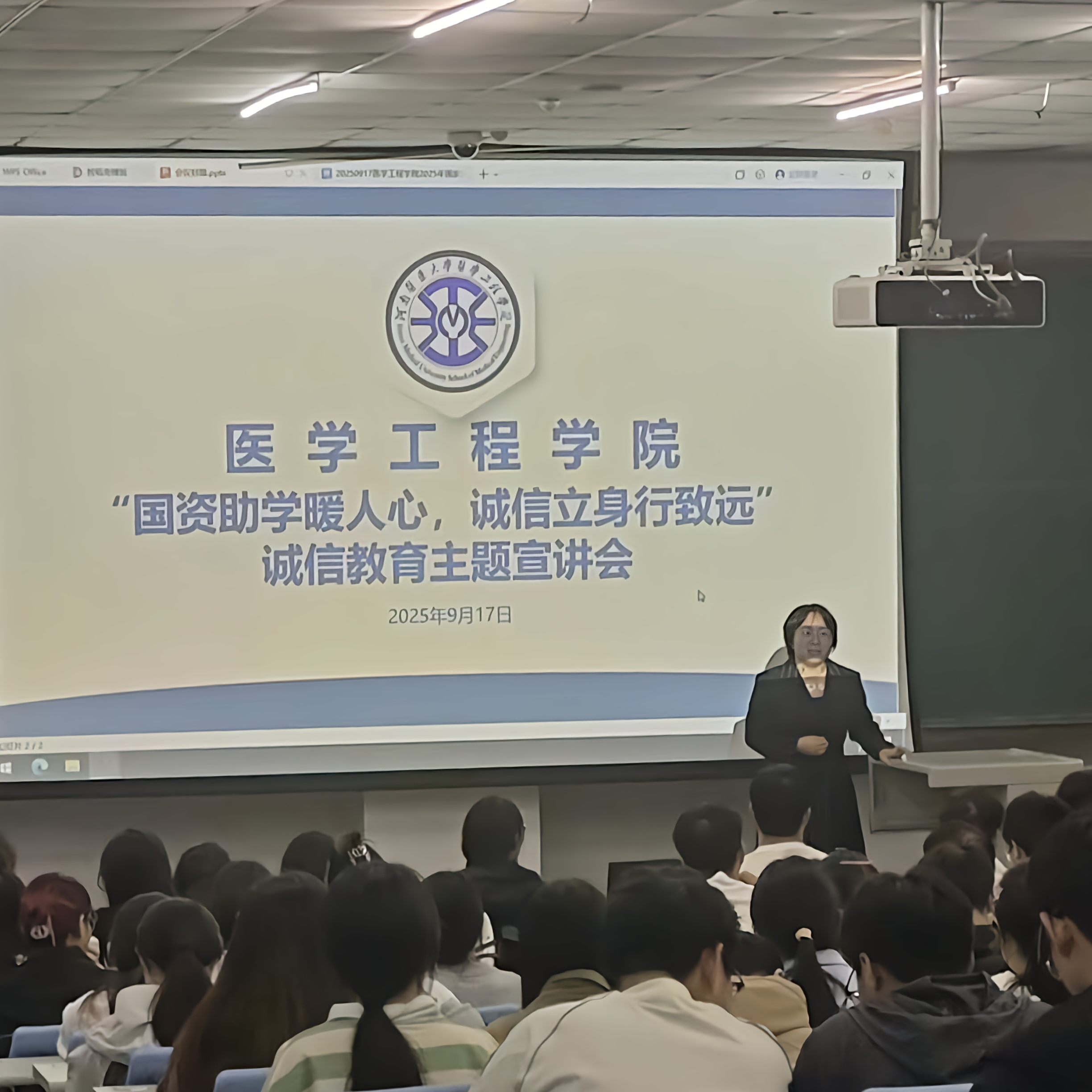 为进一步宣传国家、学校资助政策,助力学生树立感恩意识与诚信精神,我院于9月17日下午召开了“国资助学暖人心,诚信立身行致远”诚信教育主题宣讲会。本次宣讲会由辅导员范亚桢主持,我院2022级和2023级全体学生参加。
