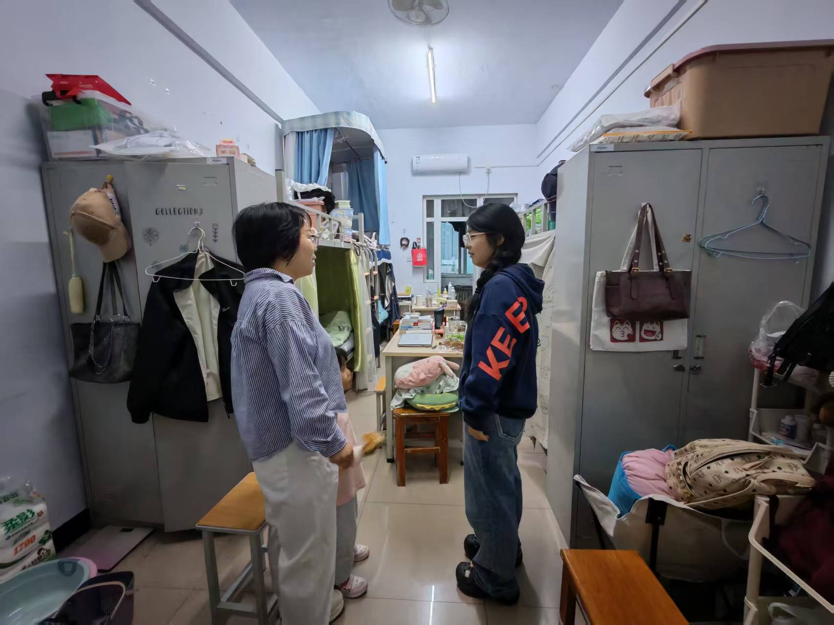 走访过程中,陈洪涛详细询问了男生宿舍同学们的学习规划、生活习惯和宿舍卫生情况,叮嘱大家要注意劳逸结合,保持良好作息,打造整洁舒适的宿舍环境。范亚桢则在女生宿舍关心同学们的返校适应情况和心理状态,提醒大家在学习和生活中遇到困难时要积极寻求帮助,并鼓励同学们保持团结互助的良好氛围。与此同时,学院对宿舍用电安全、防火防患等问题进行了检查,及时排查并指出了存在的隐患。