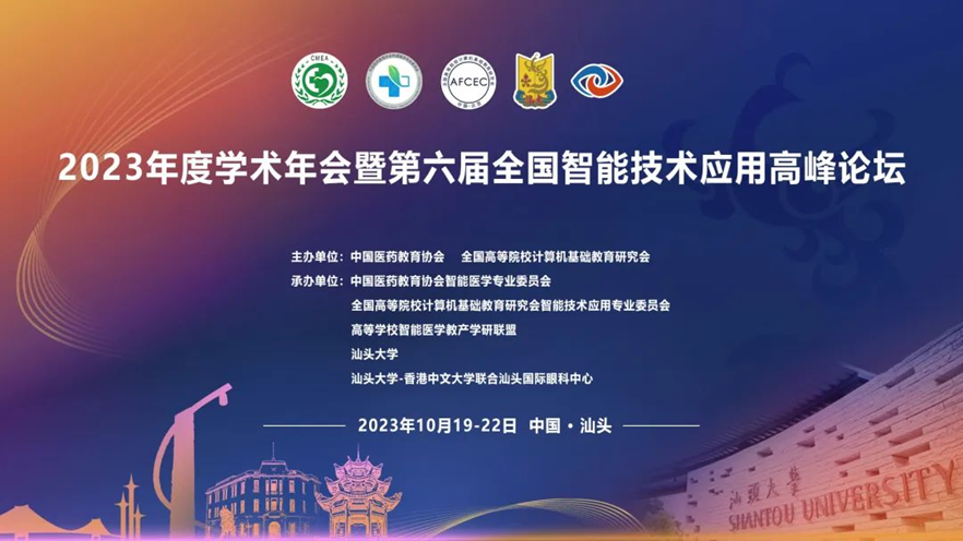 2023年10月20日,由中国医药教育协会,中国医药教育协会智能医学专业委员会、高等学校智能医学教产学研联盟、汕头大学、汕头大学-香港中文大学联合汕头国际眼科中心承办的2023年度学术年会暨第六届全国智能技术应用高峰论坛在汕头大学隆重举行。来自全国66所大学(包括香港)及相关单位的近150名参会代表出席了本次大会。中国医药教育协会副会长娄岩、中国医药教育协会副会长苑振亭、西南医科大学校长张春祥、我校副校长林俊堂、汕头大学校长郝志峰、还有全国各地智能医学领域的专家学者,一同见证大会的盛大开幕。